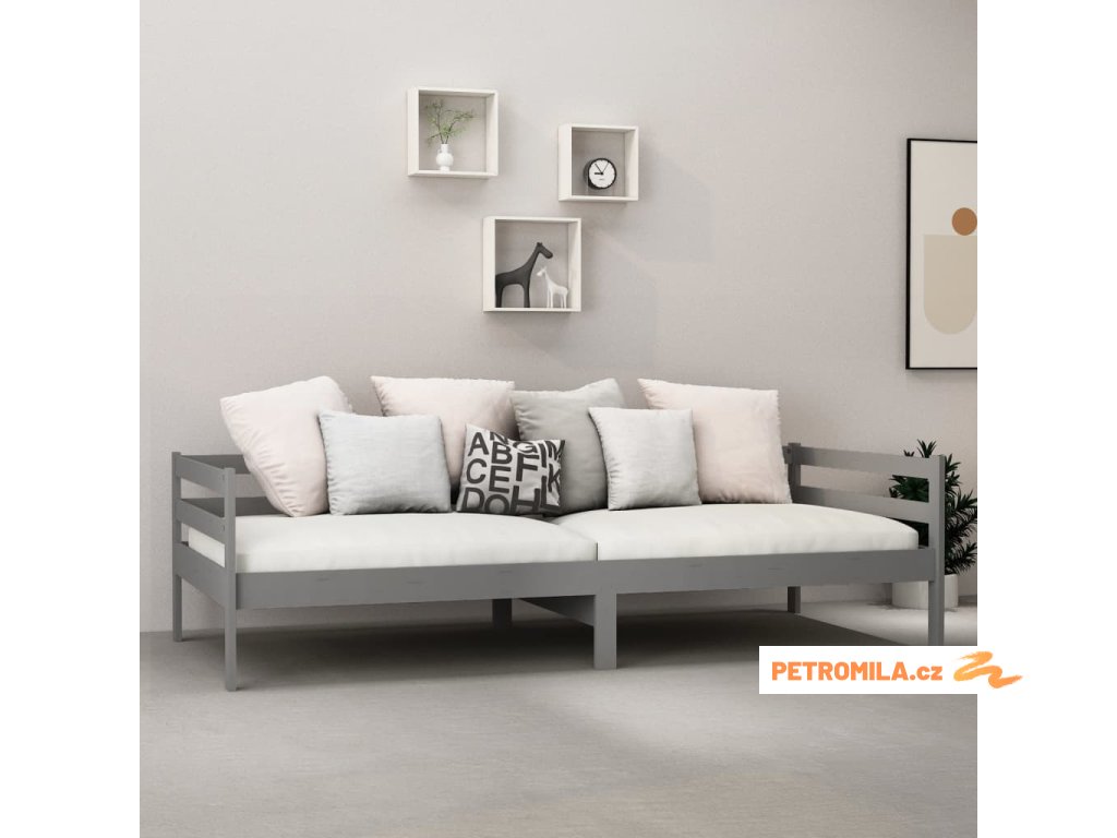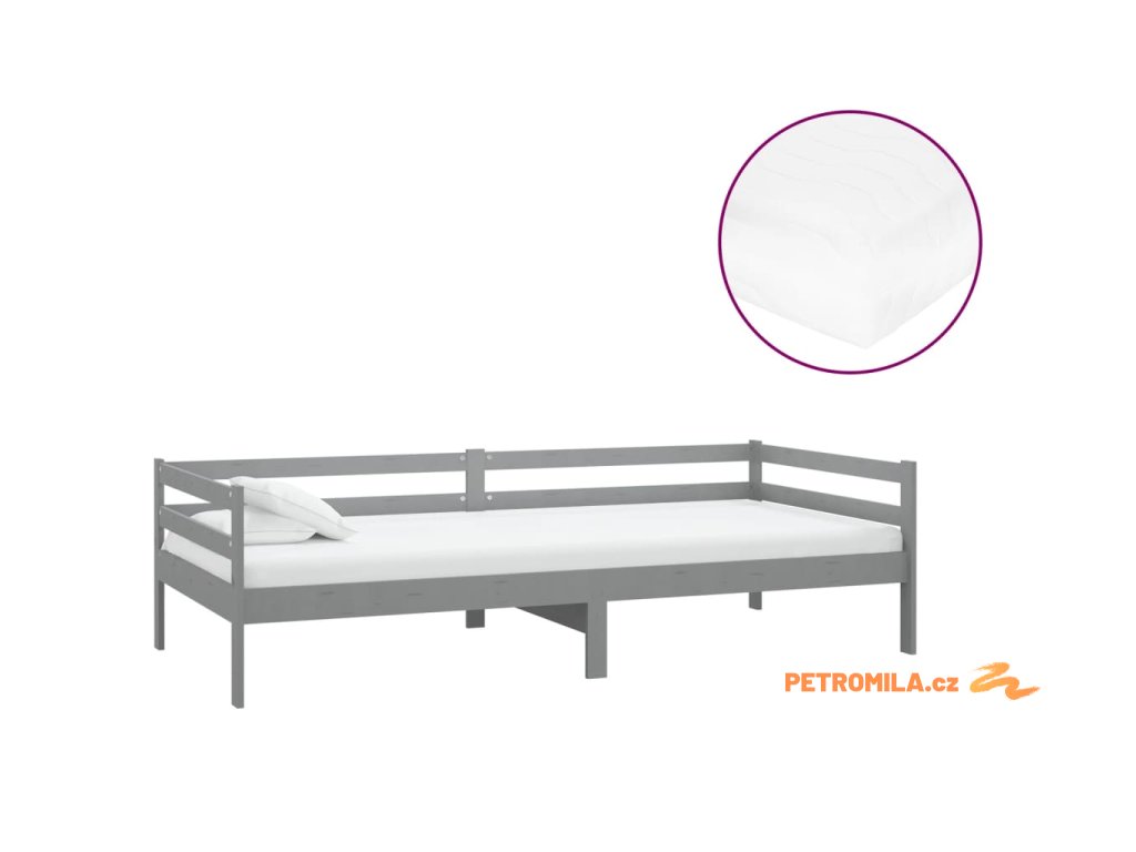 Denní postel s matrací 90 x 200 cm šedá masivní borové dřevo