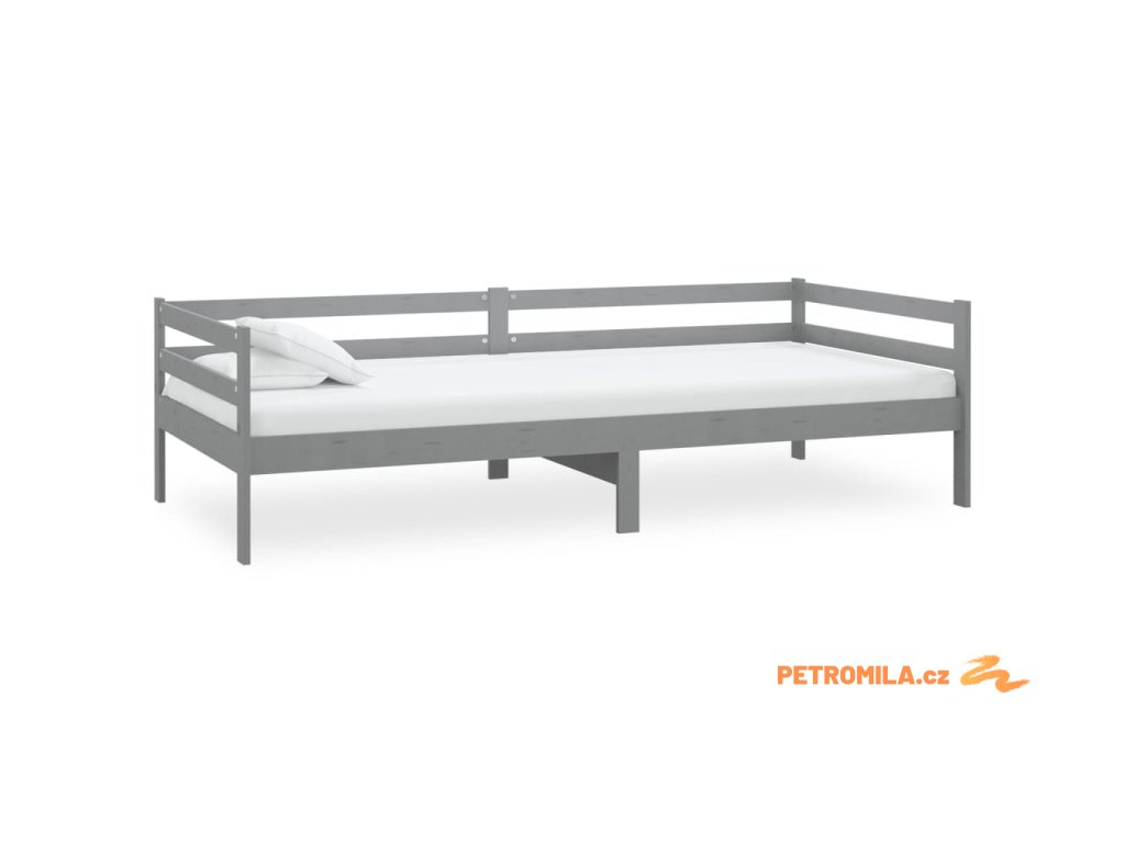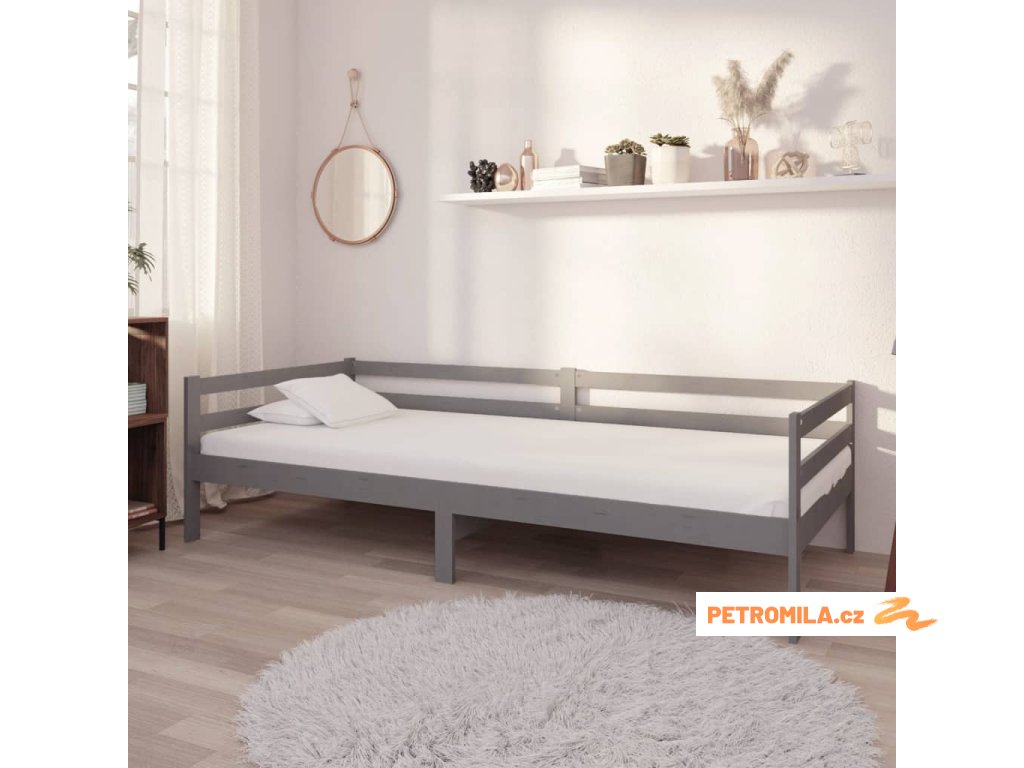 Denní postel s matrací 90 x 200 cm šedá masivní borové dřevo