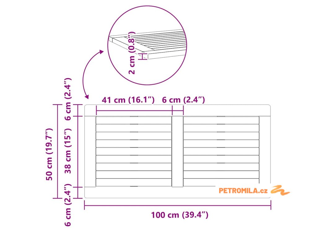 - Celkové rozměry: 100 x 50 x 2 cm (D x Š x V)