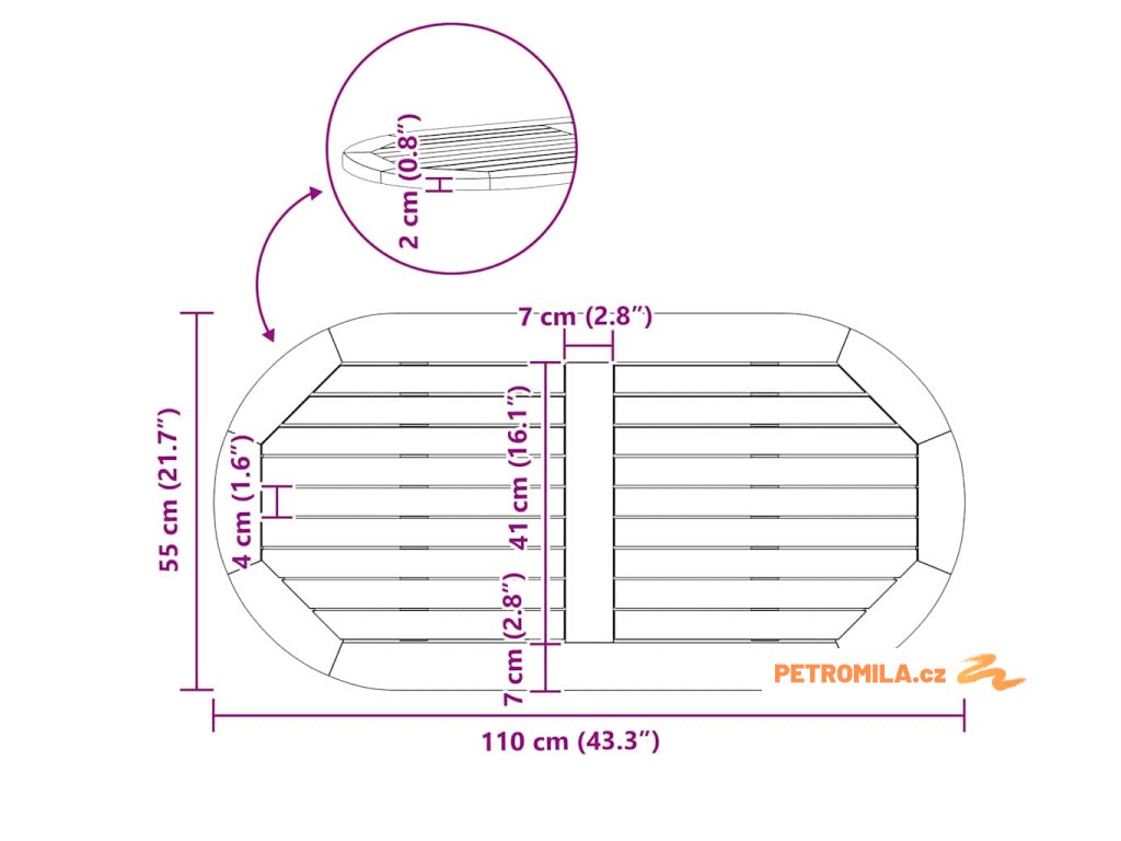 - Celkové rozměry: 110 x 55 x 2 cm (D x Š x V)