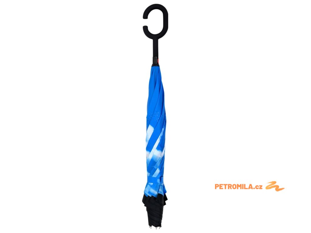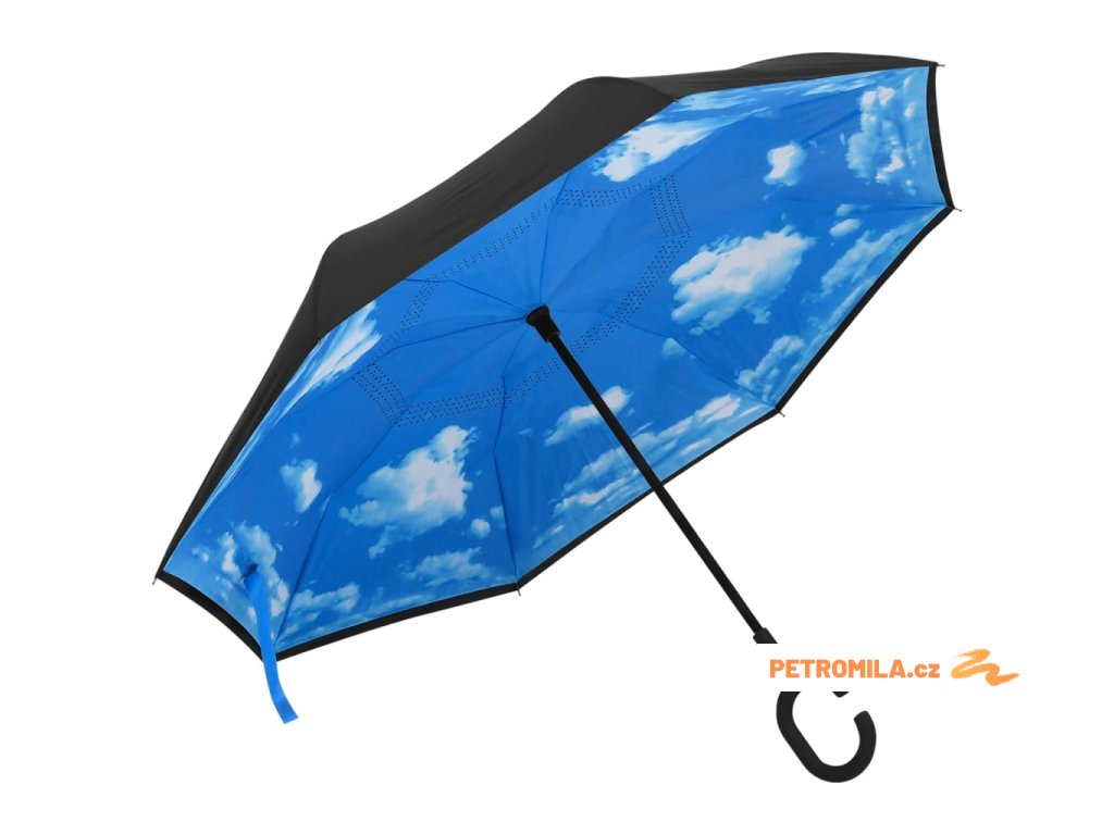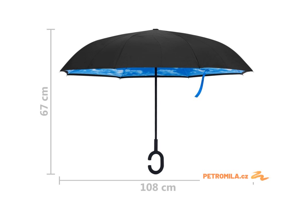 Tento deštník je vyroben z materiálu 190T PG, takže je odolný vůči vodě. Sklolaminátová žebra a kovové tyče zvyšují stabilitu. Vzhledem k obrácené konstrukci se deštník s rukojetí mnohem lépe nasazuje a vyndává z auta a zabraňuje odkapávání vody, takže vaše auto zůstane suché. Za deštivých dnů tak nemusíte mít deštník otevřený, aby vyschl, když si ho vezmete dovnitř. Na chodbě nebo v předsíni zabírá vždy méně místa.