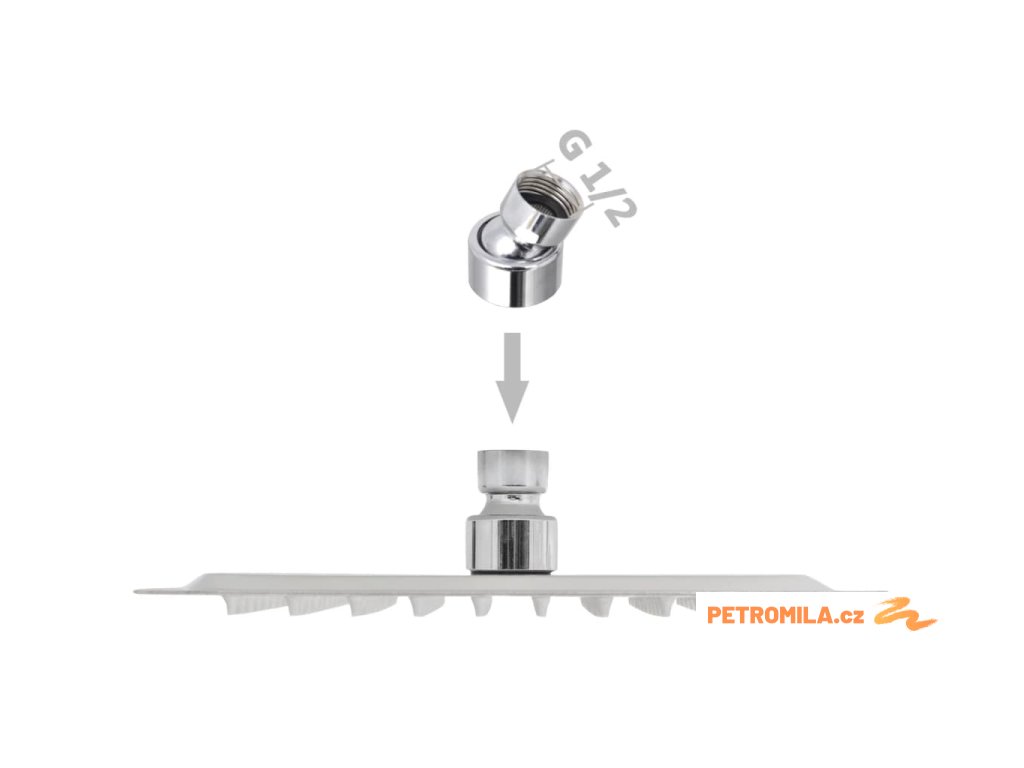 Silikonové trysky zajišťují snadné čištění vodního kamene a otočný kloub umožňuje nastavení úhlu proudu sprchy.