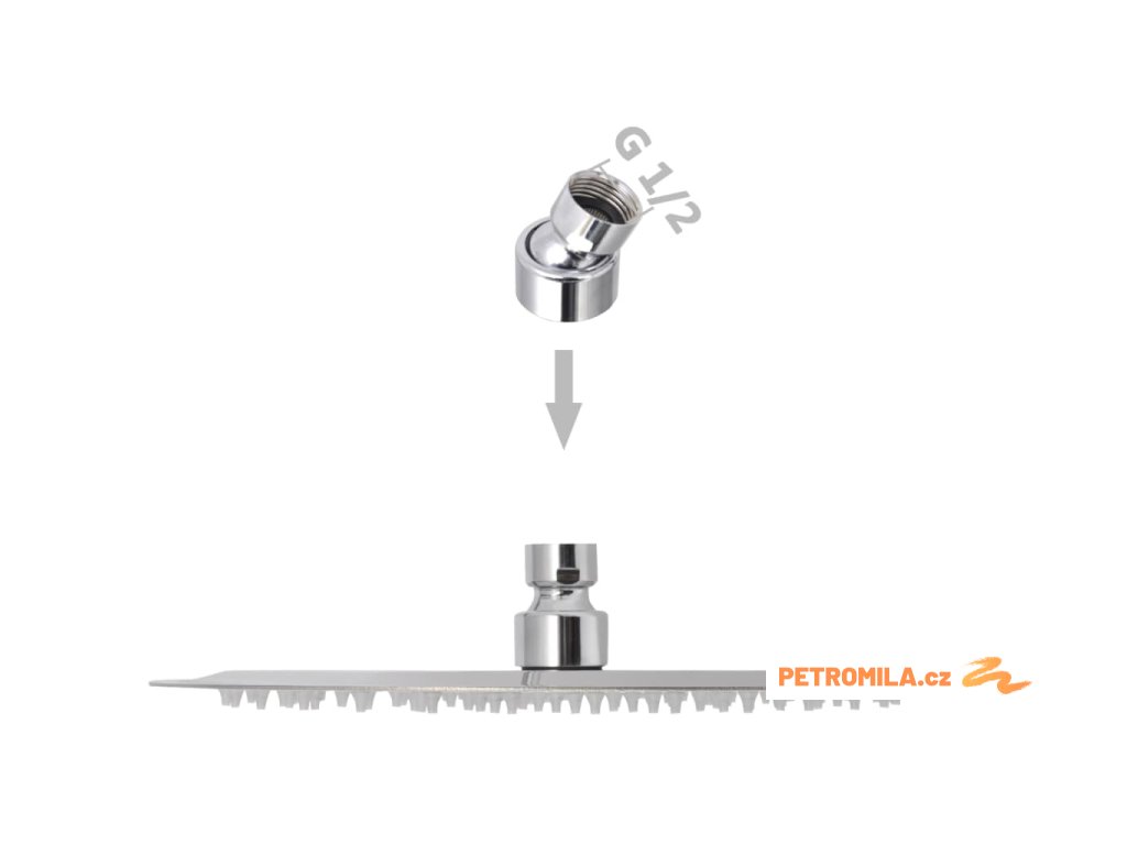 Silikonové trysky zajišťují snadné čištění vodního kamene a otočný kloub umožňuje nastavení úhlu proudu sprchy.