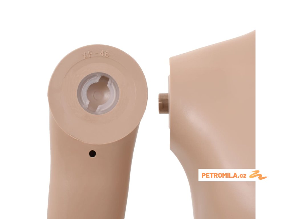 Figurína se skládá ze 4 částí: hlavy, trupu s nohama, levé paže a pravé paže. Hlavou a rameny je možné otáčet o 360° a obličejem figuríny lze pohybovat nahoru a dolů o 45°, což vám umožní nastavovat figurínu do nejrůznějších pozic. Celé tělo je vyrobeno z polypropylenu, který je lehký a odolný. Skleněná základna s hliníkovým podstavcem zajišťuje stabilitu figuríny a umožňuje také vystavení bot na figuríně.