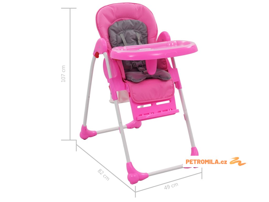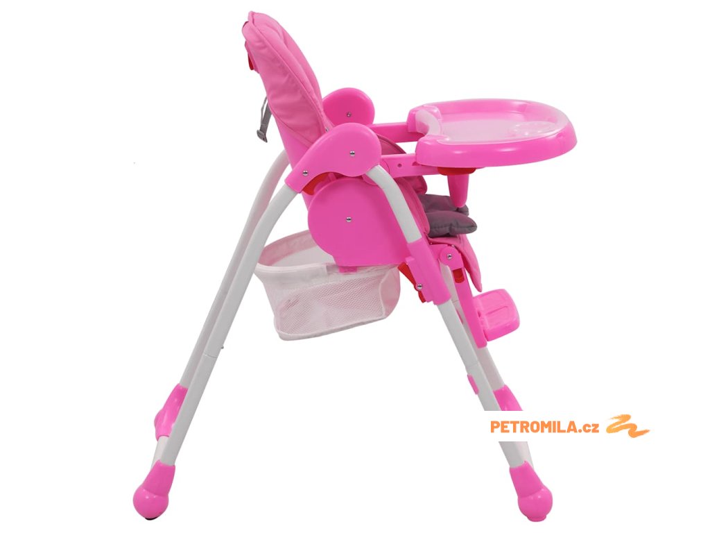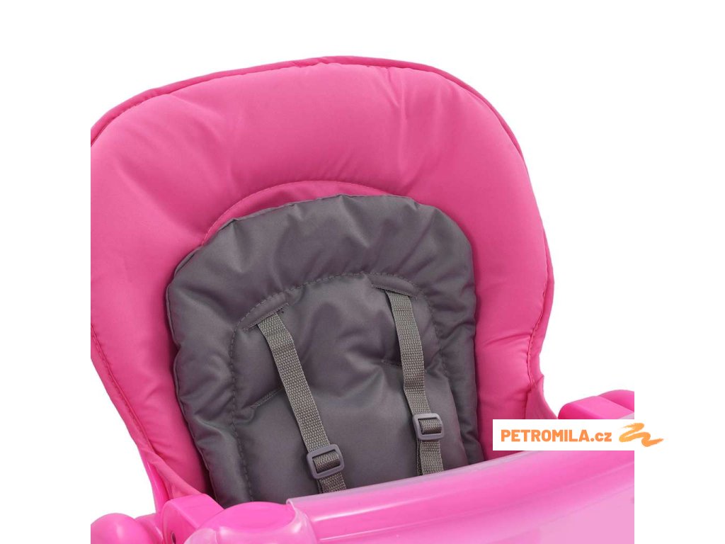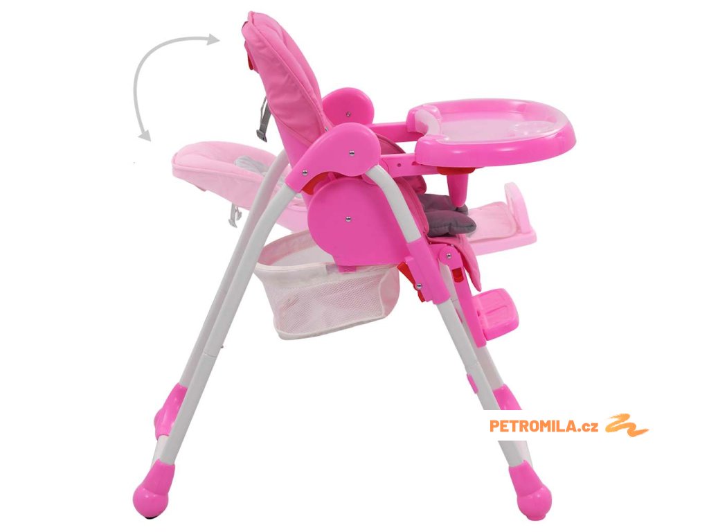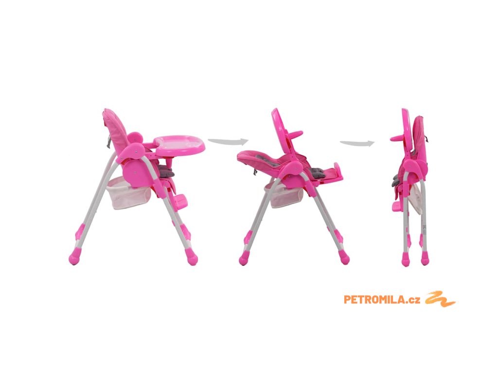 Má ocelový rám a prvky z odolného plastu pro dlouhotrvající pevnost a provozní životnost, takže vašemu dítěti poskytne spolehlivou oporu. Polstrované sedadlo s měkkým čalouněním a 5bodový bezpečnostní postroj se postarají o pohodlí a bezpečí vašeho nejmenší po celou dobu jídla. Židličku je možné naklopit do 3 různých poloh tak, aby dítě mělo za všech okolností dostatek komfortu. Upravit lze také její výšku a opěrku nohou, což rovněž přispívá k příjemnému posezení. Nasouvací stoleček je odjímatelný, aby se lépe čistil. Ve spodní části najdete úložný košík, kam si můžete ukládat různé potřeby pro děti, například hračku, plenku, ubrousky a další věci, které je dobré mít při ruce. Židlička je vzadu opatřena kolečky pro snadné přesouvání.
