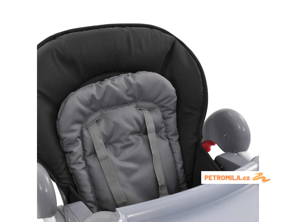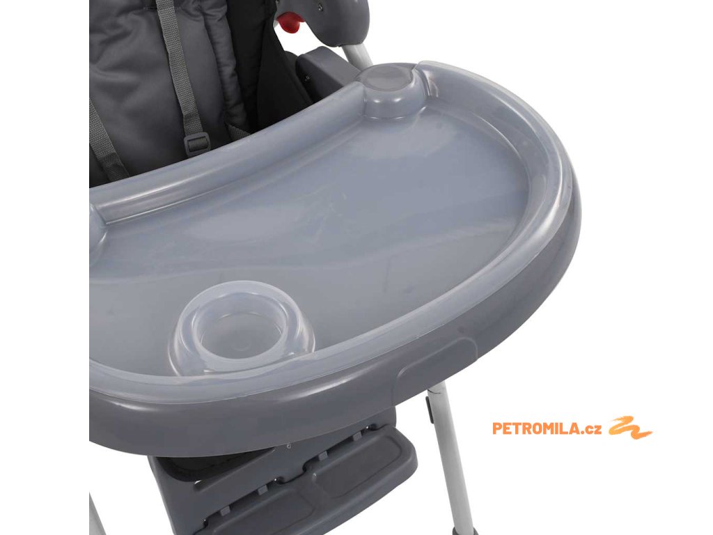 Má ocelový rám a prvky z odolného plastu pro dlouhotrvající pevnost a provozní životnost, takže vašemu dítěti poskytne spolehlivou oporu. Polstrované sedadlo s měkkým čalouněním a 5bodový bezpečnostní postroj se postarají o pohodlí a bezpečí vašeho nejmenší po celou dobu jídla. Židličku je možné naklopit do 3 různých poloh tak, aby dítě mělo za všech okolností dostatek komfortu. Upravit lze také její výšku a opěrku nohou, což rovněž přispívá k příjemnému posezení. Nasouvací stoleček je odjímatelný, aby se lépe čistil. Ve spodní části najdete úložný košík, kam si můžete ukládat různé potřeby pro děti, například hračku, plenku, ubrousky a další věci, které je dobré mít při ruce. Židlička je vzadu opatřena kolečky pro snadné přesouvání.