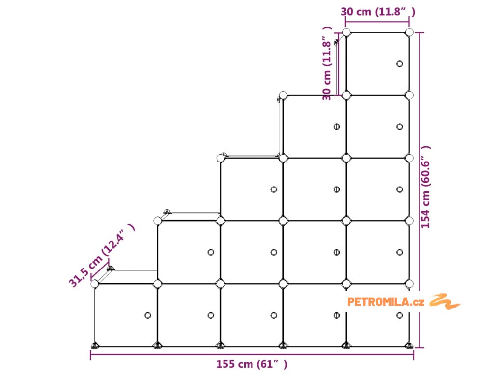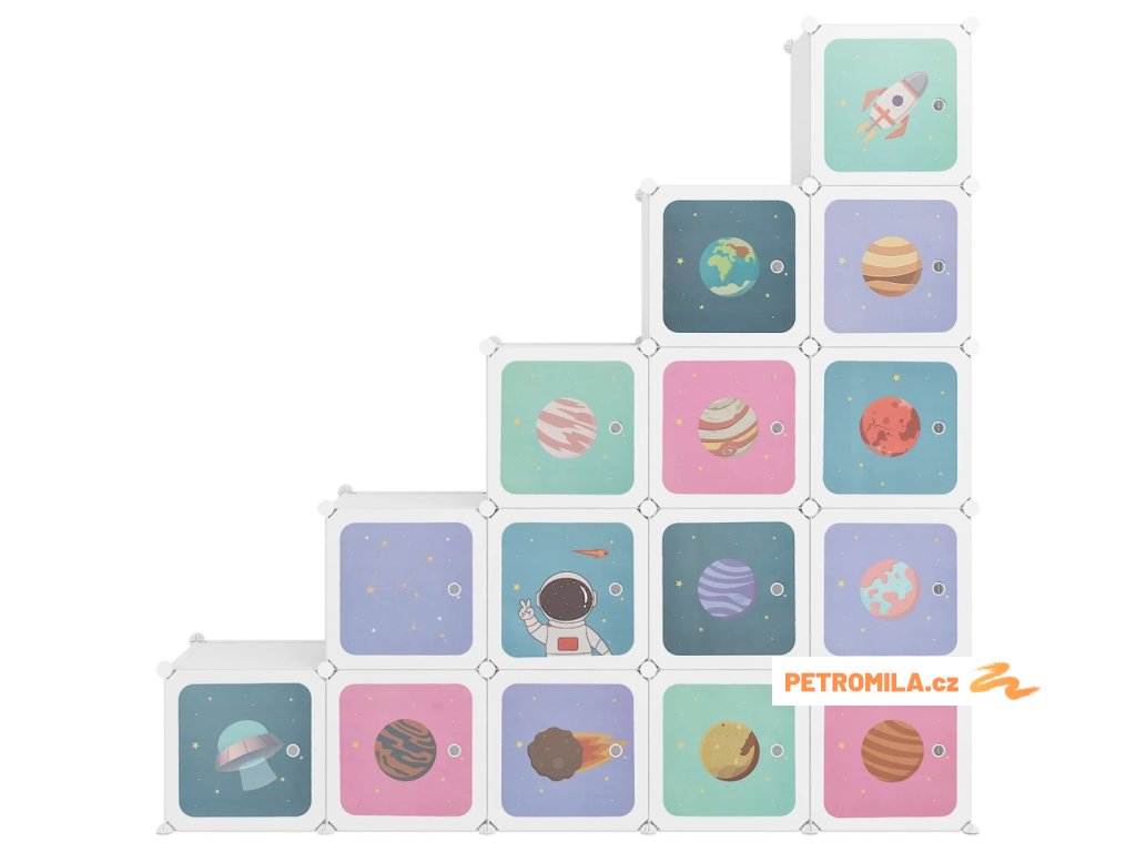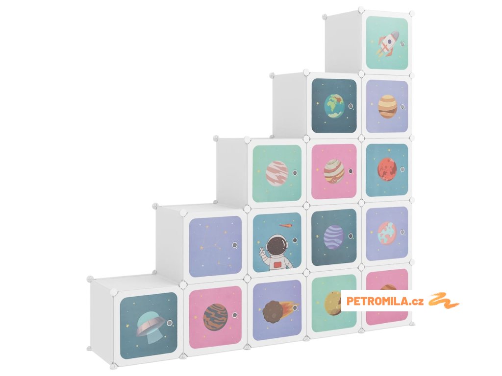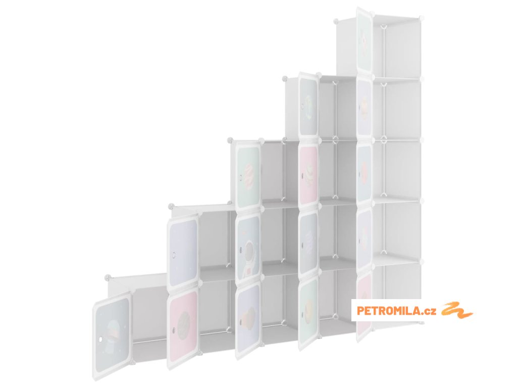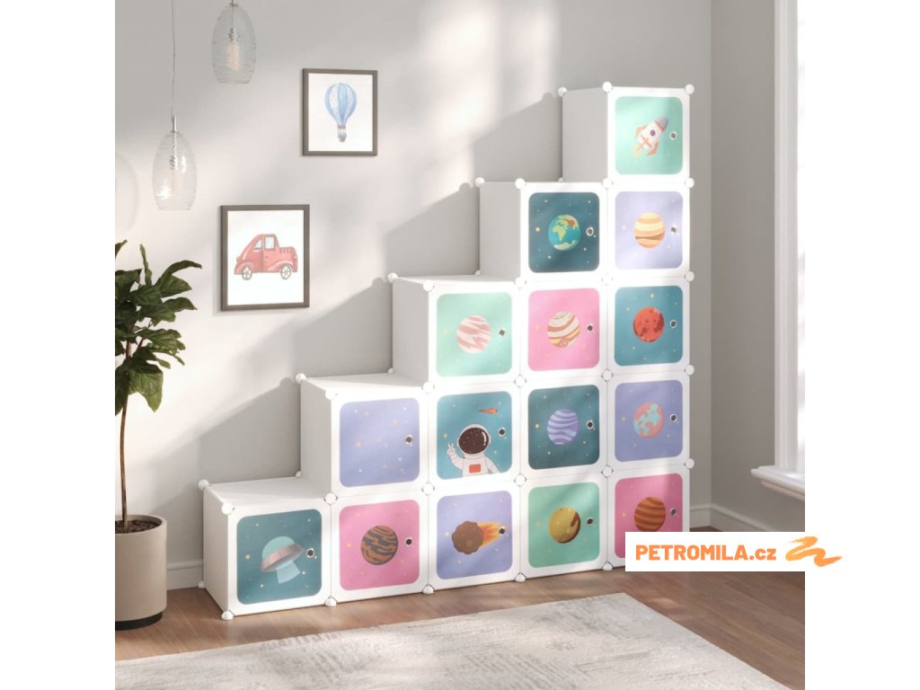 Dětská modulární skříň s 15 úložnými boxy bílá PP