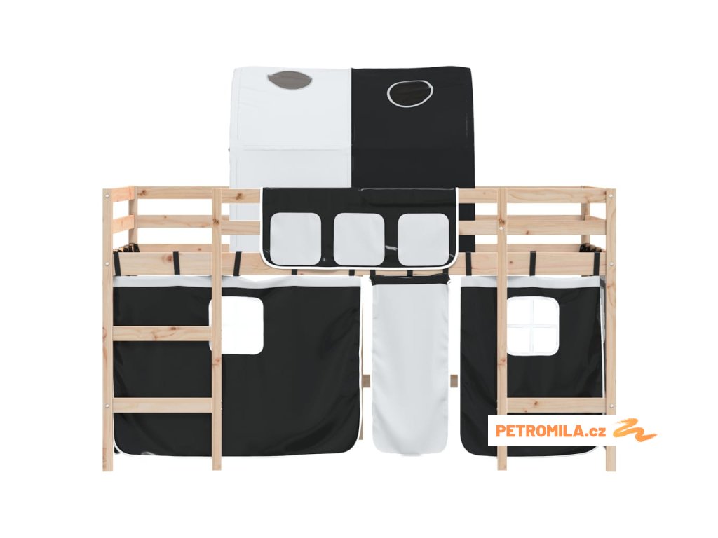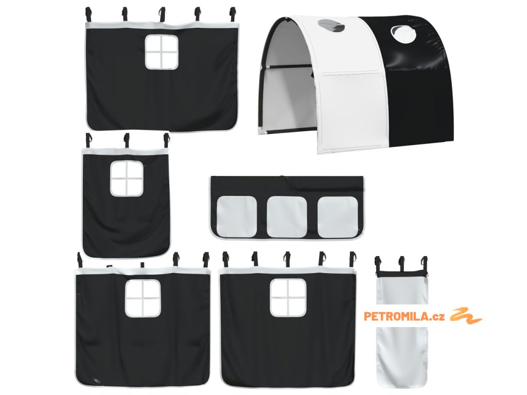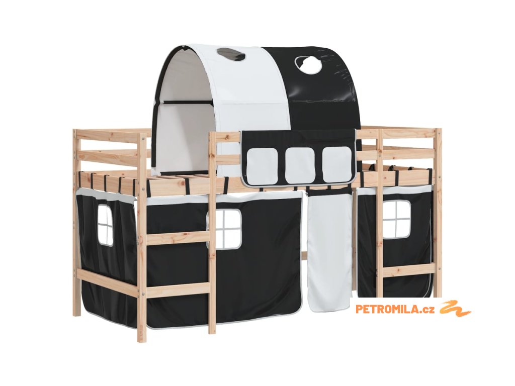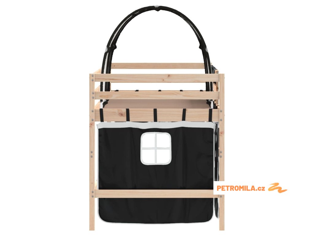 Dětská patrová postel s tunelem bílá a černá 80x200 cm borovice