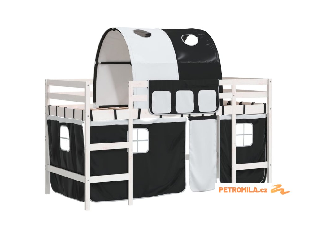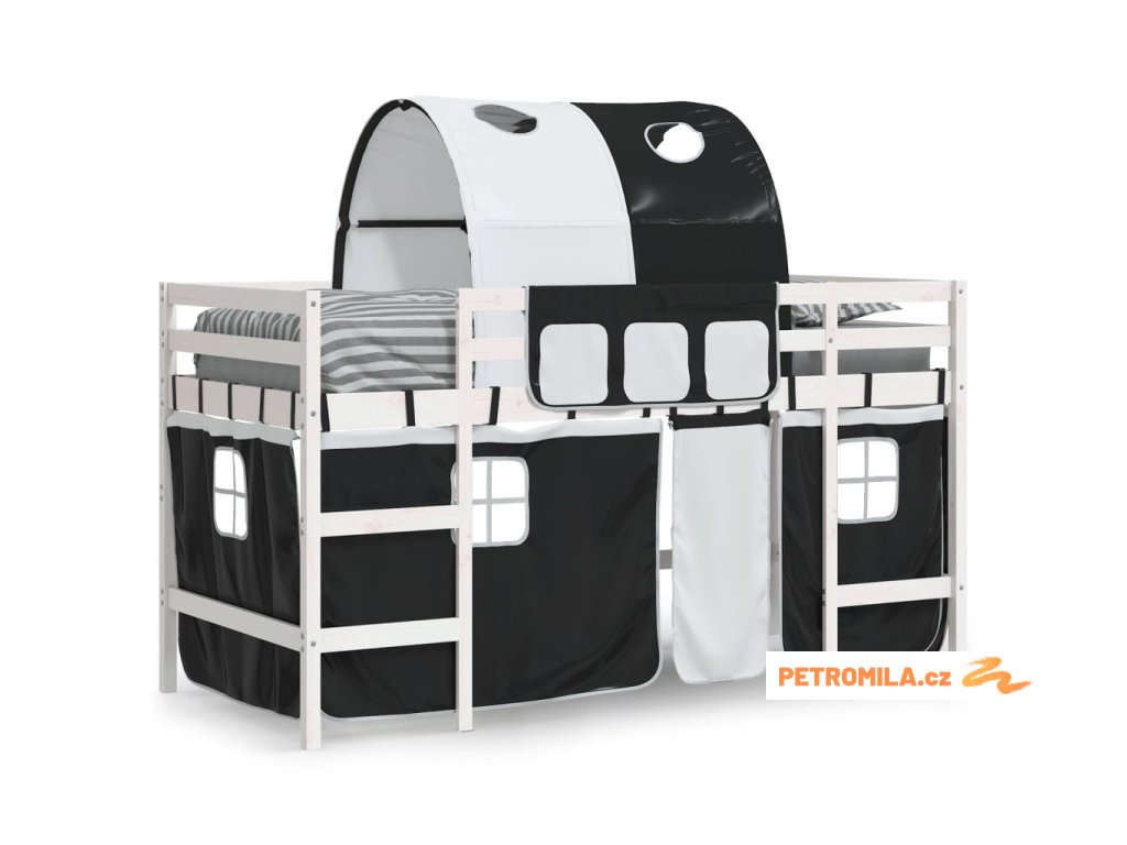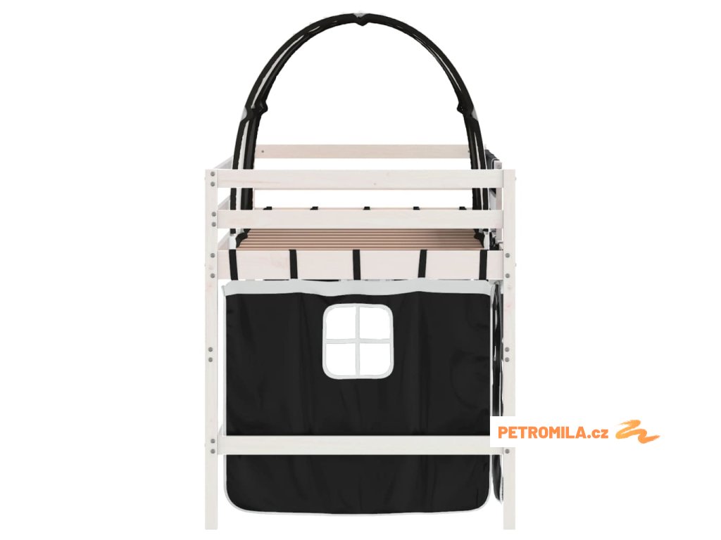 Dětská patrová postel s tunelem bílá a černá 90x190 cm borovice