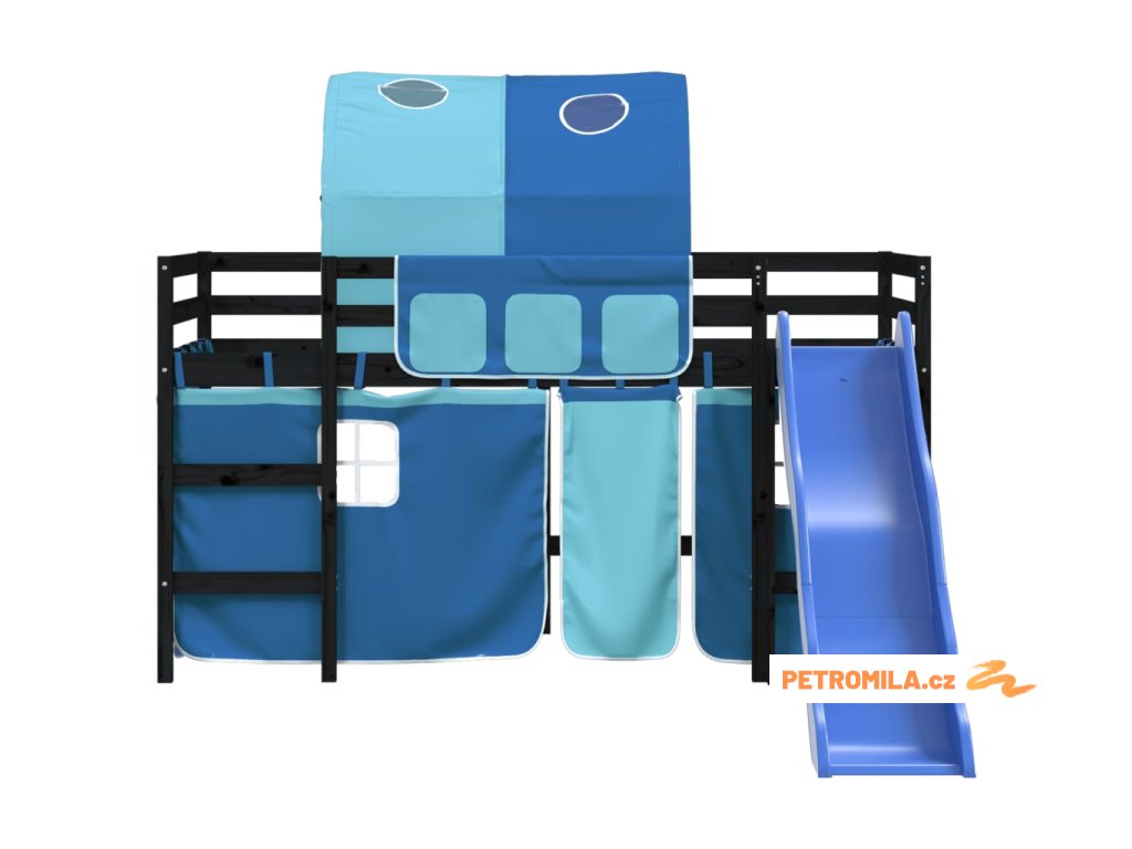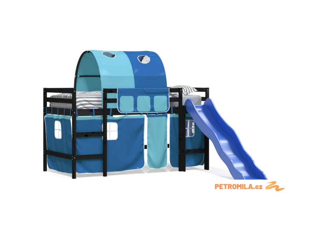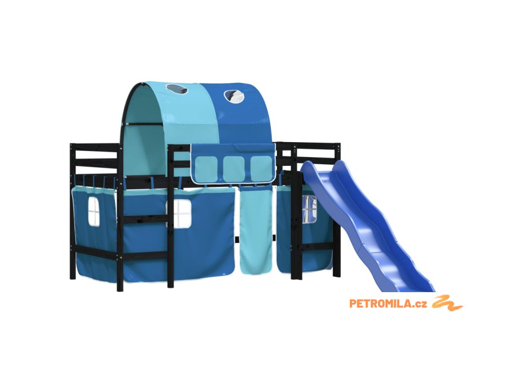 Dětská patrová postel s tunelem modrá 80x200 cm masiv borovice