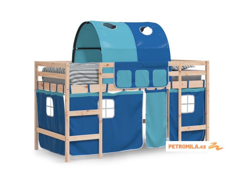 Dětská patrová postel s tunelem modrá 80x200 cm masiv borovice
