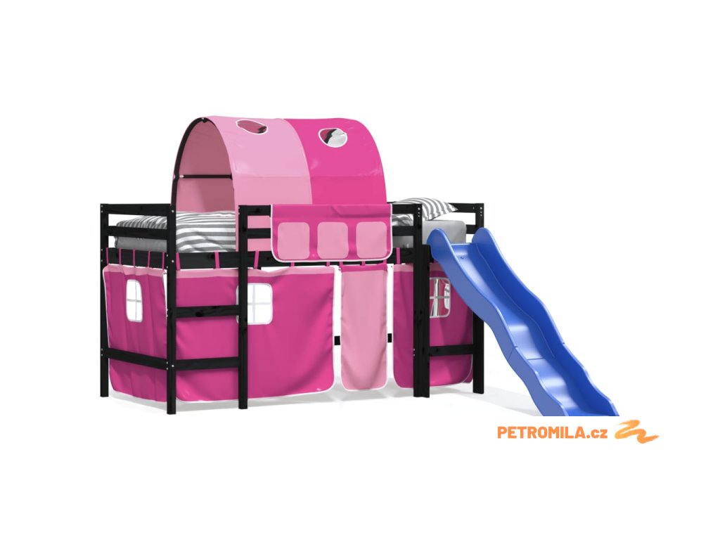 Dětská patrová postel s tunelem růžová 80x200 cm masiv borovice