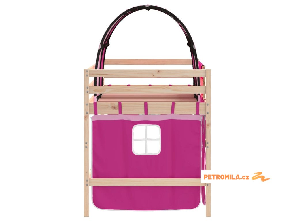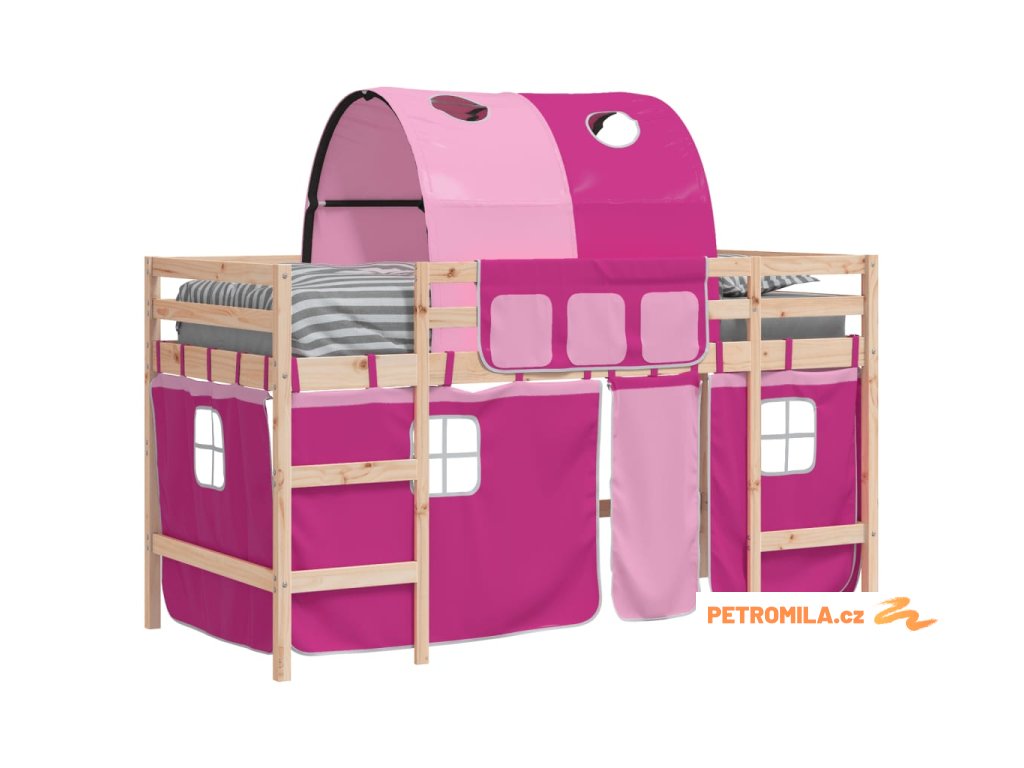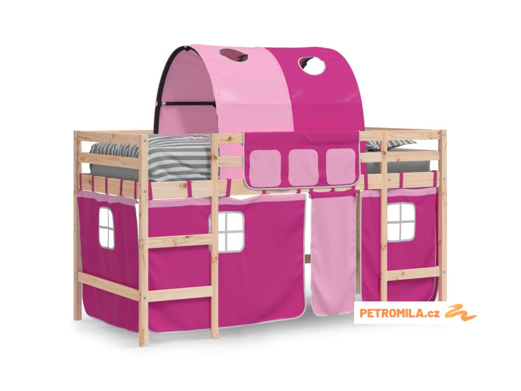 Dětská patrová postel s tunelem růžová 90x190 cm masiv borovice