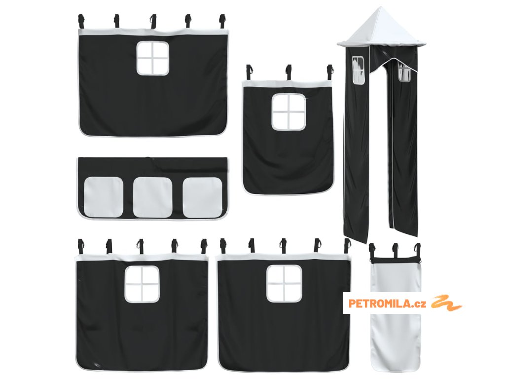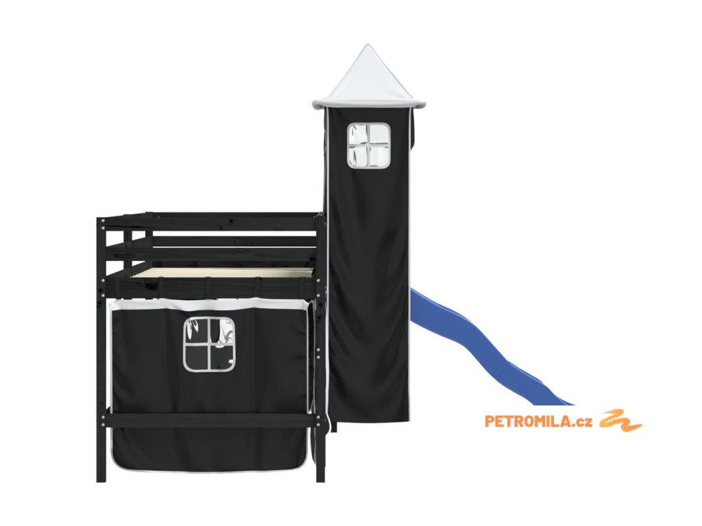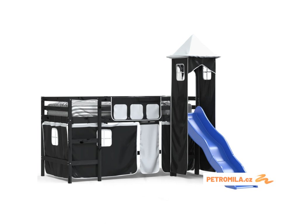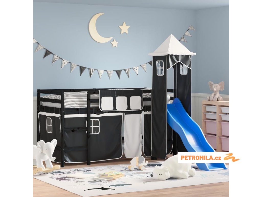 Dětská patrová postel s věží bílá a černá 80 x 200 cm borovice