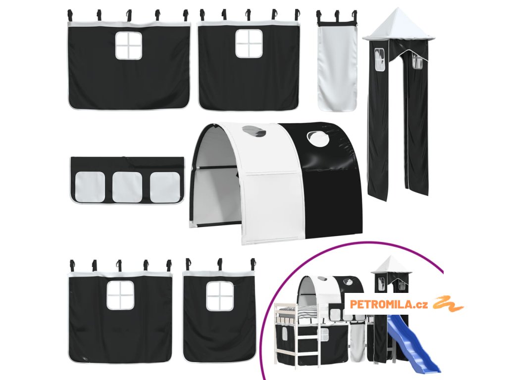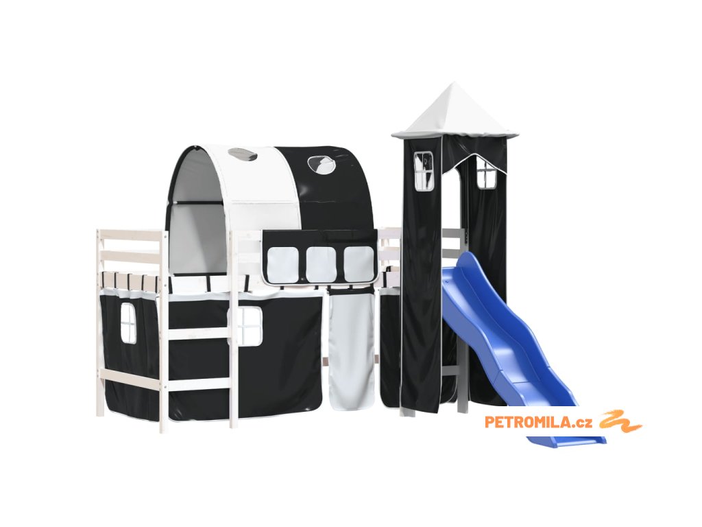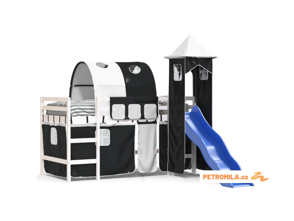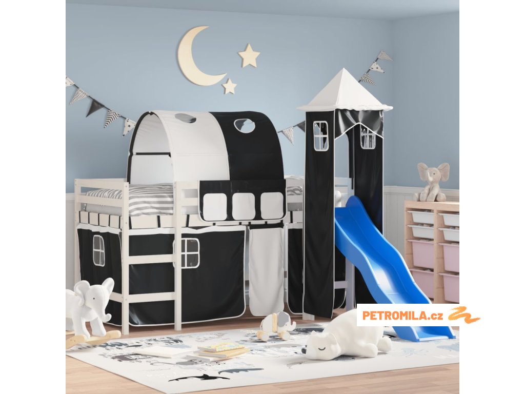 Dětská patrová postel s věží bílá a černá 80 x 200 cm borovice