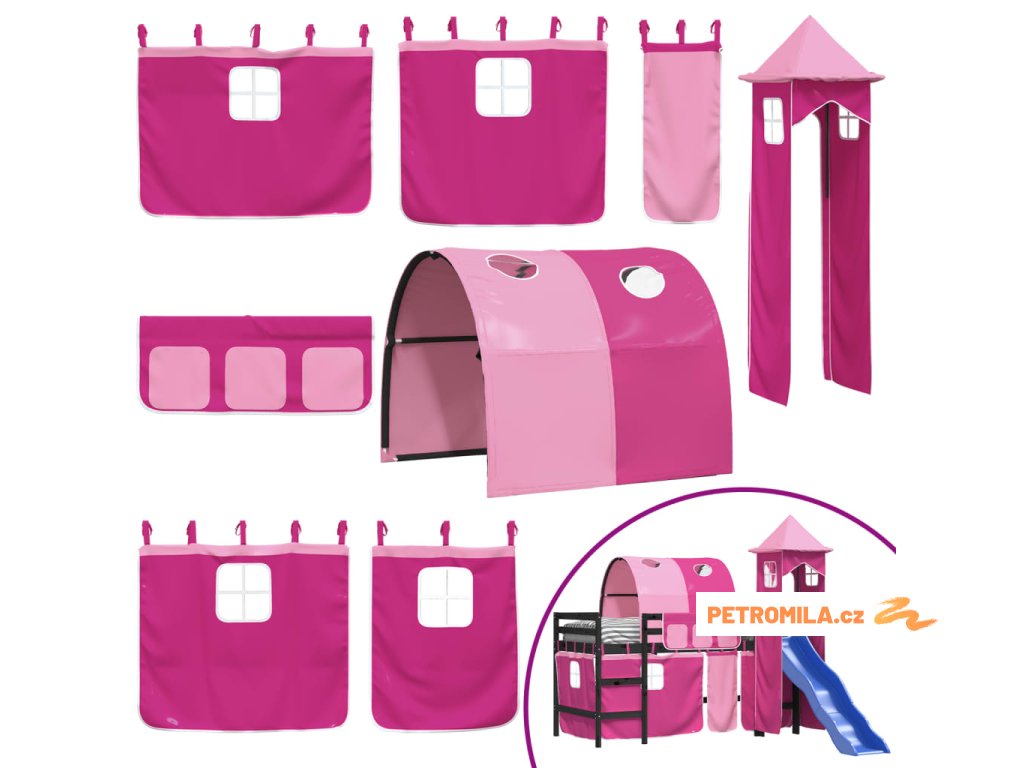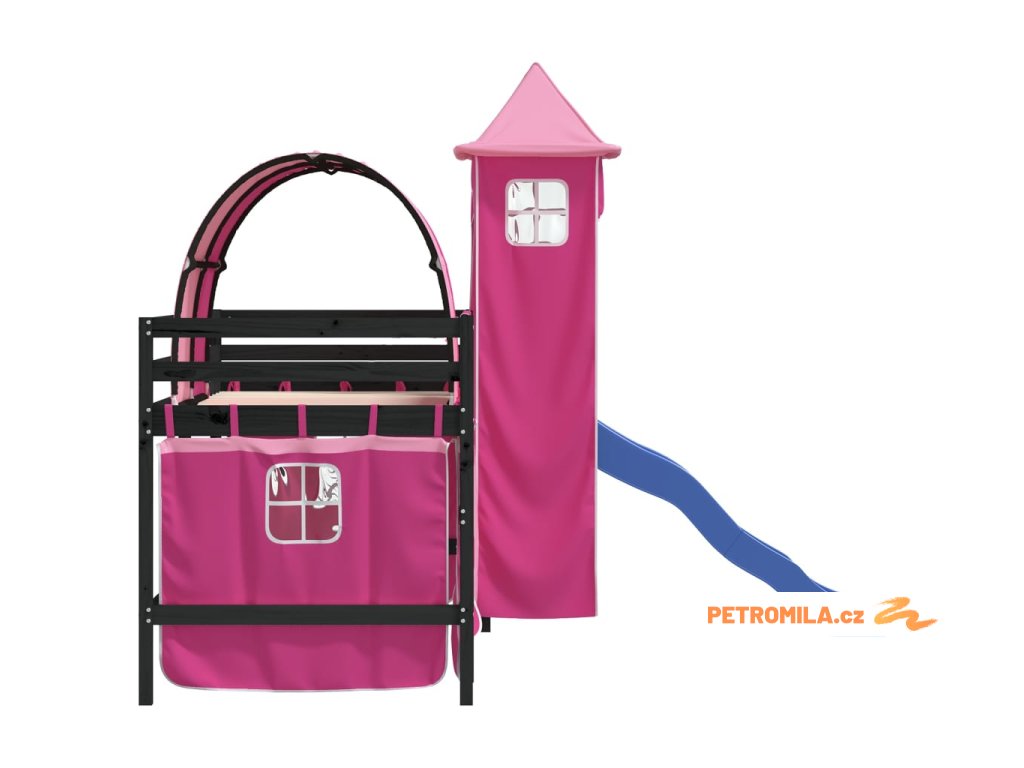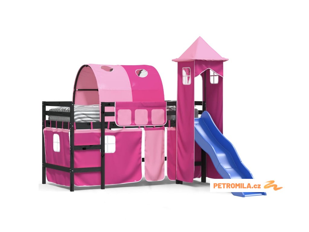 Dětská patrová postel s věží růžová 80 x 200 cm masiv borovice
