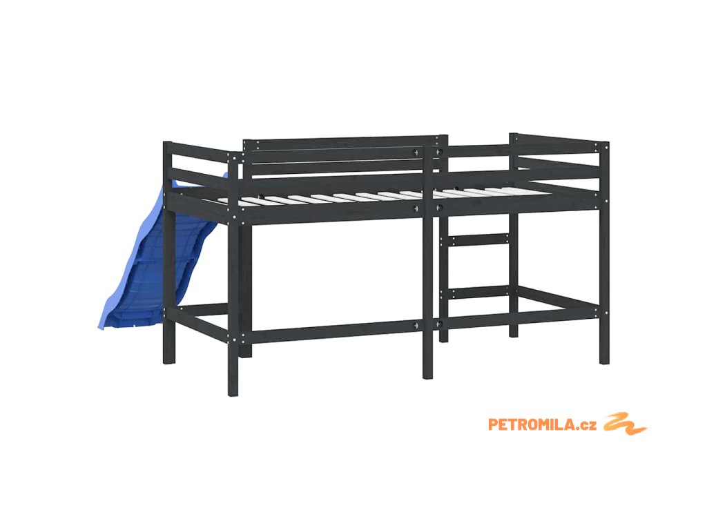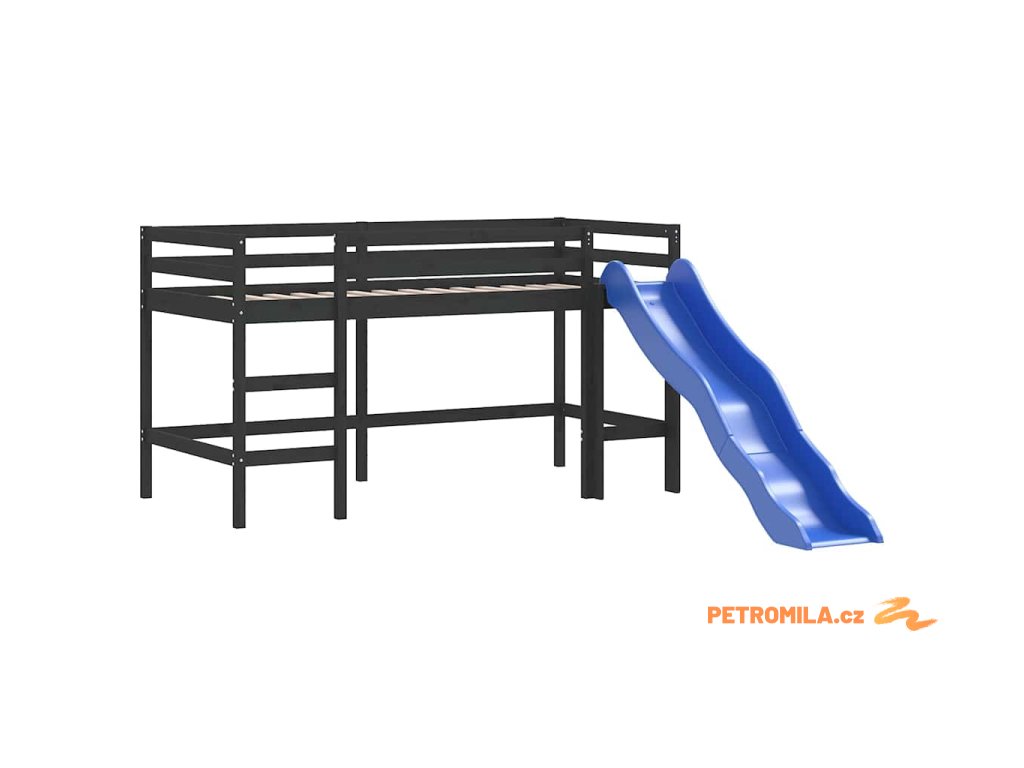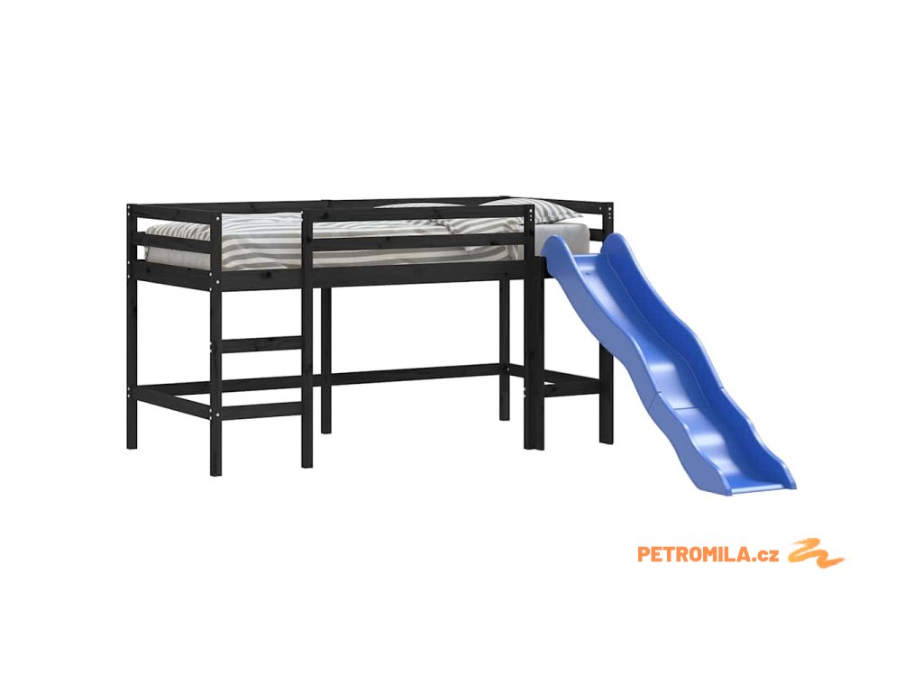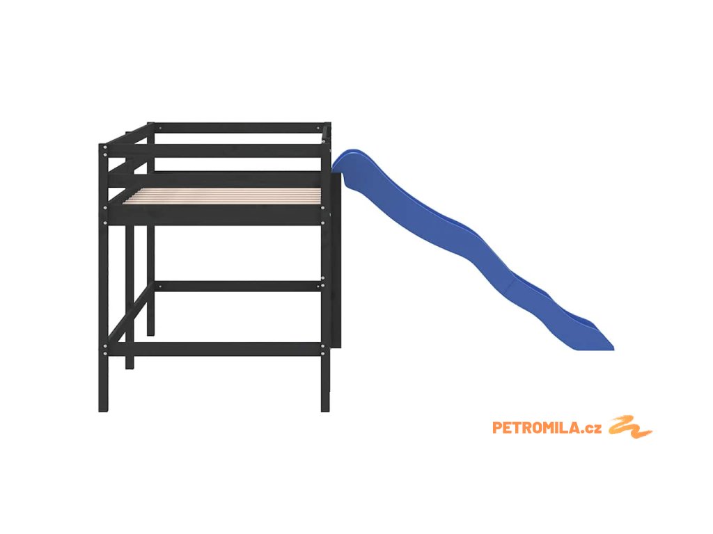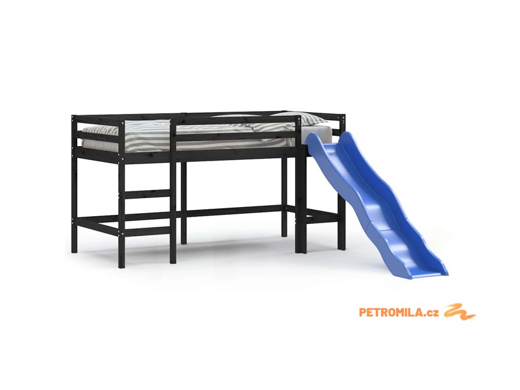 Dětská patrová postel se skluzavkou černá 80x200cm borové dřevo
