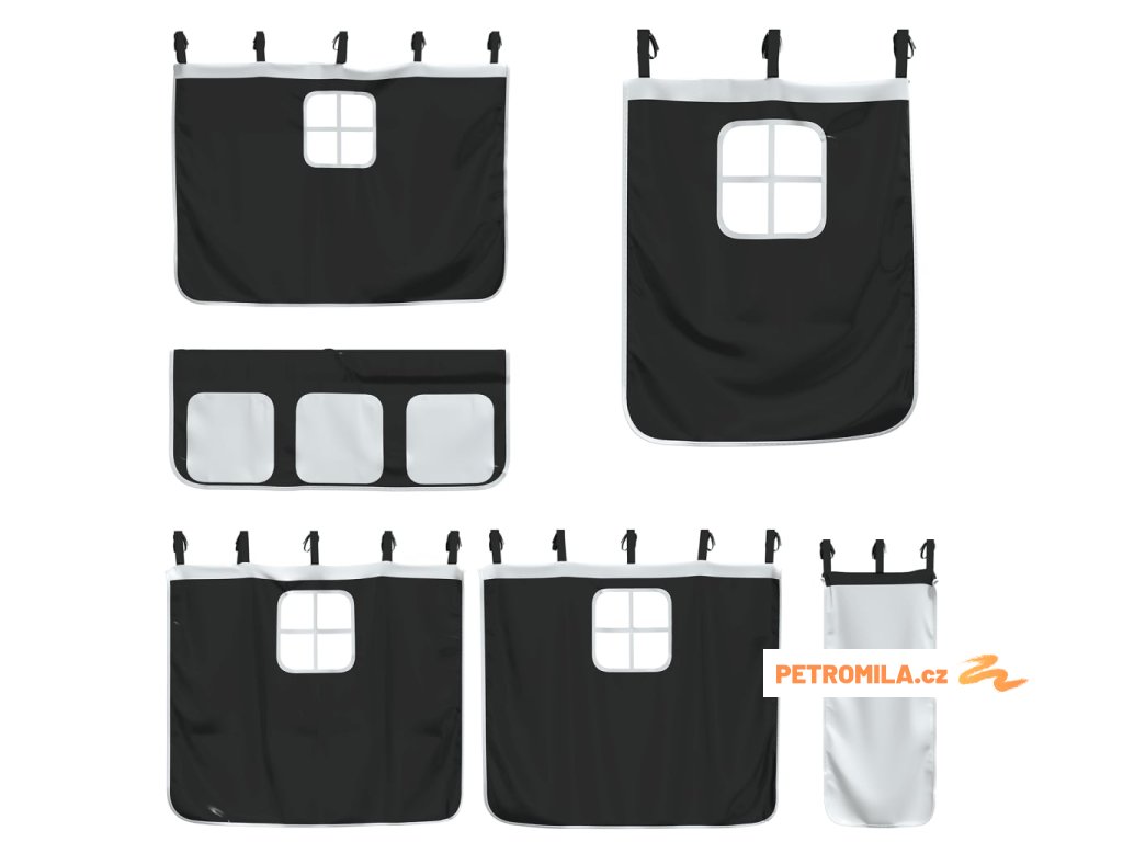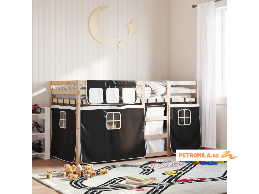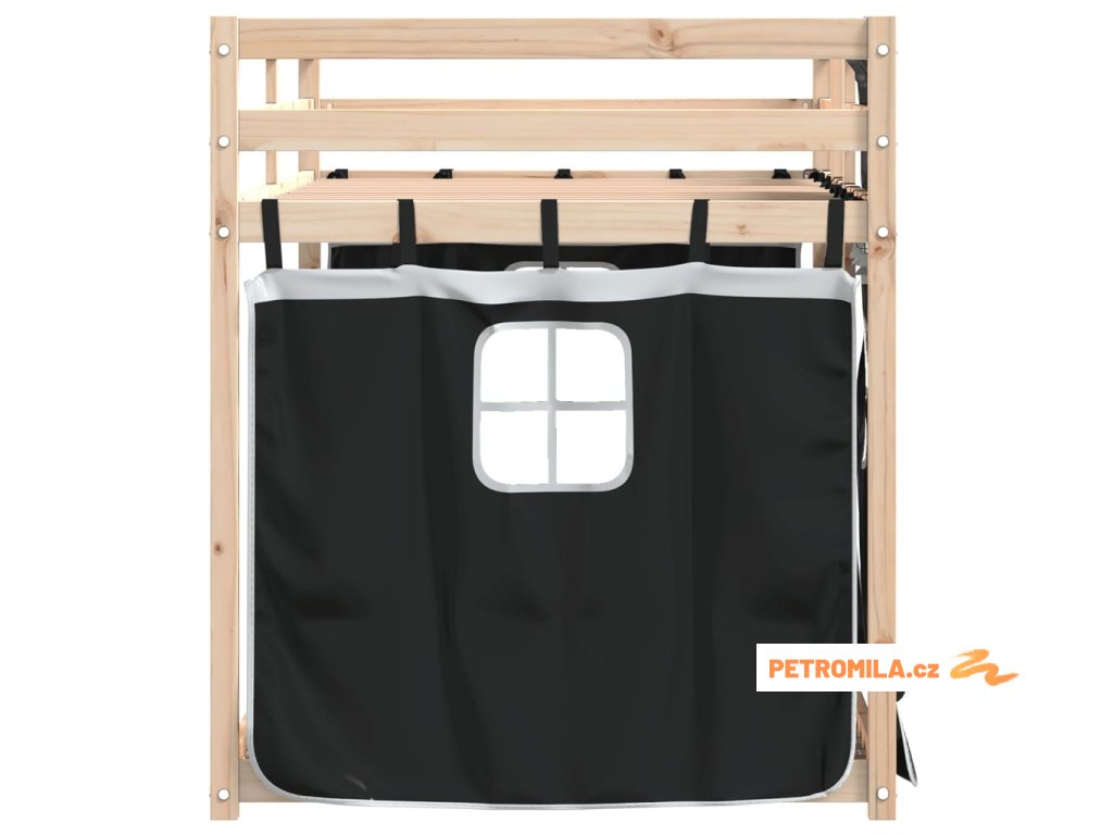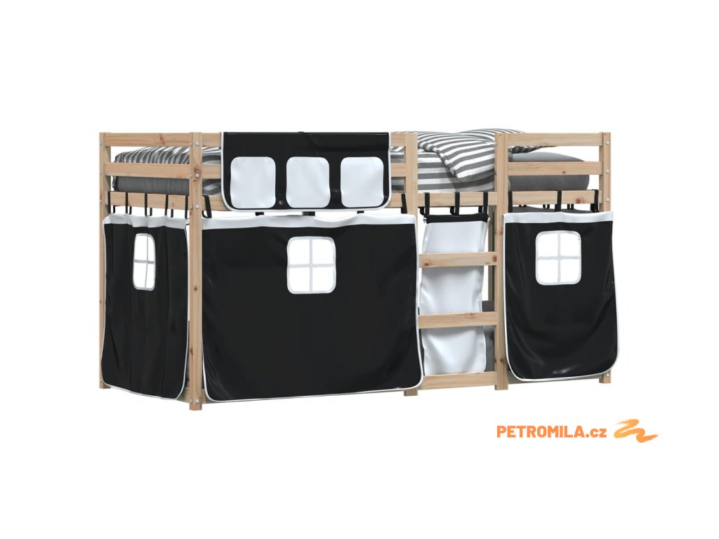 Dětská patrová postel se závěsy bílá a černá 90x190 cm borovice