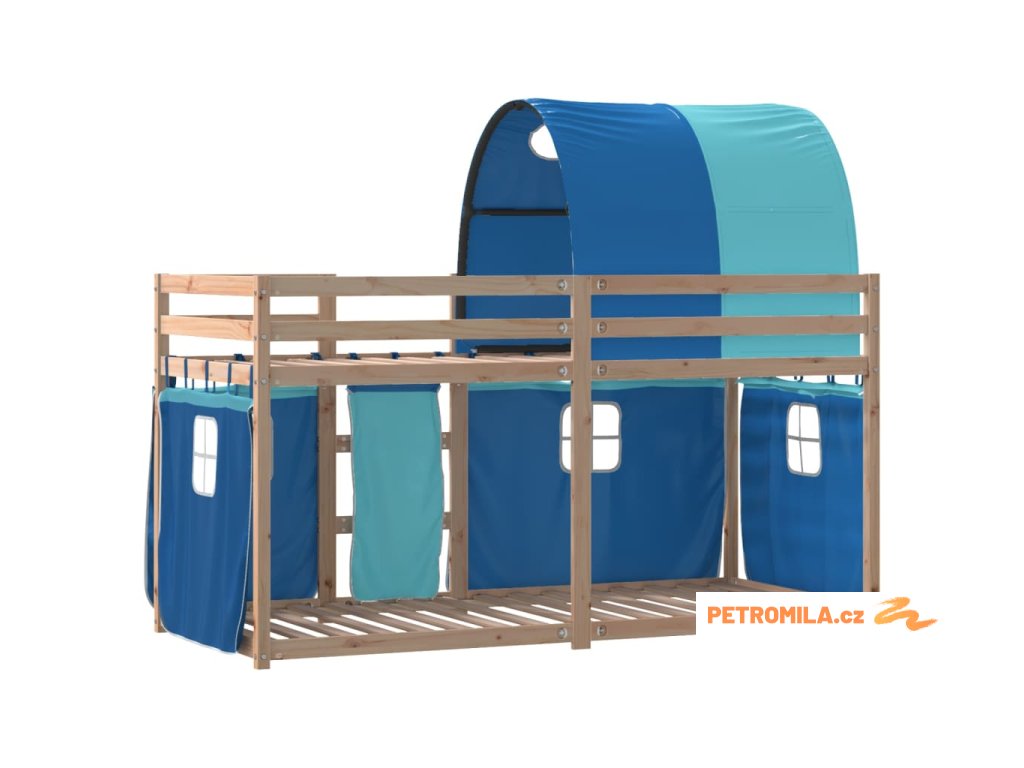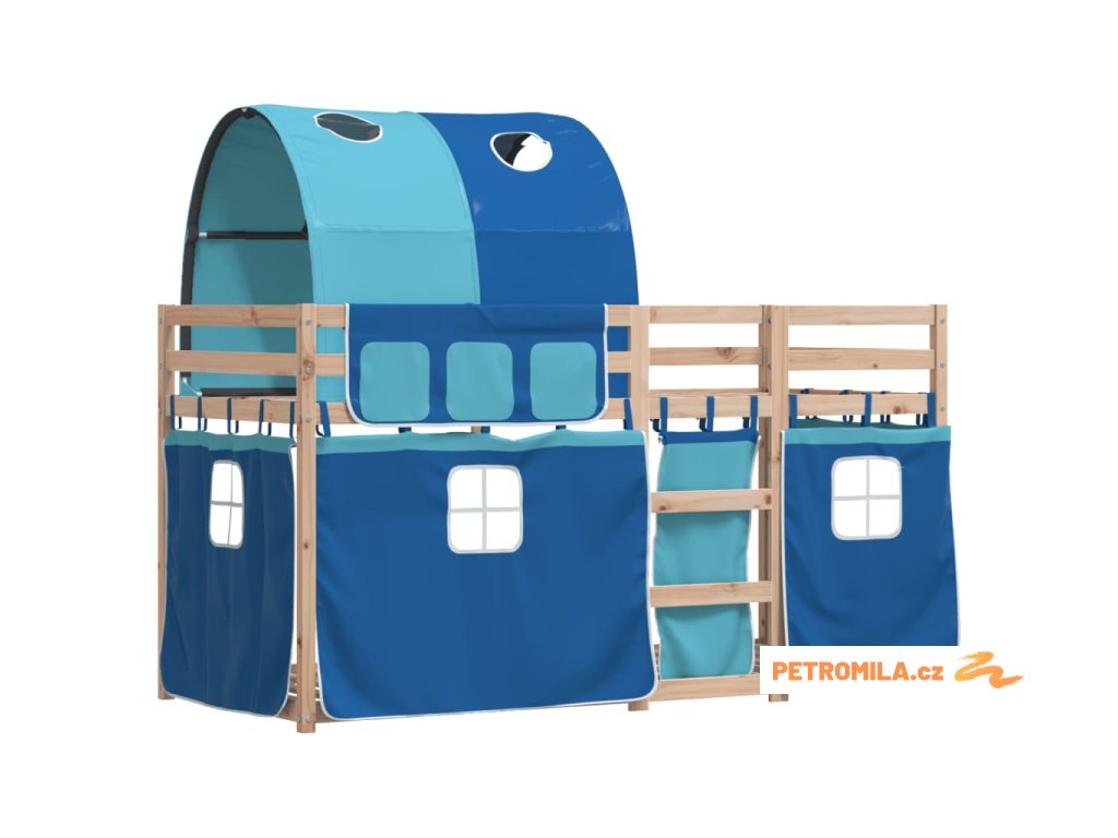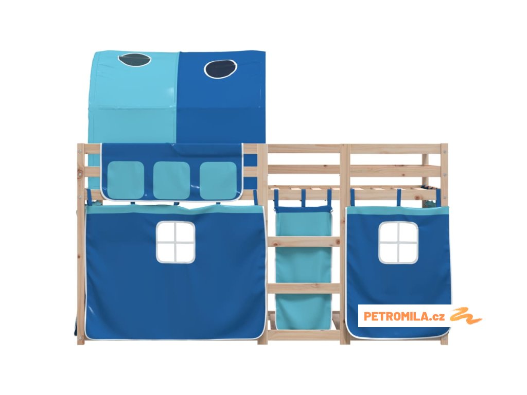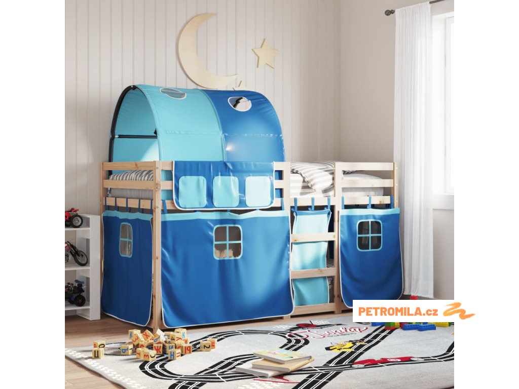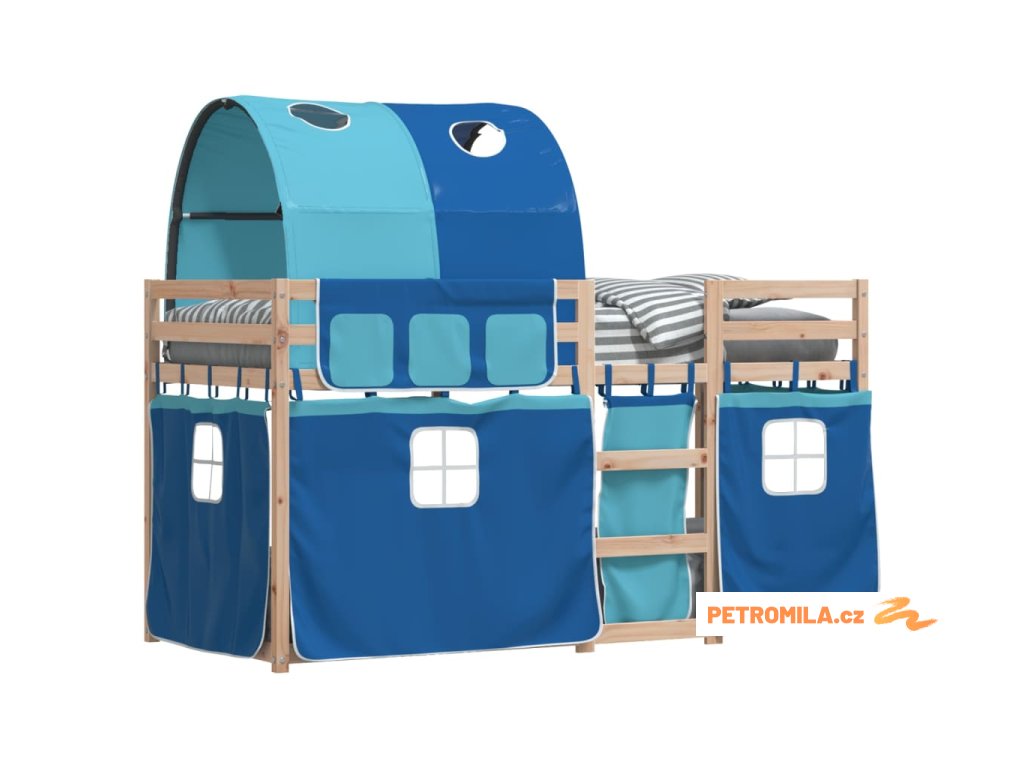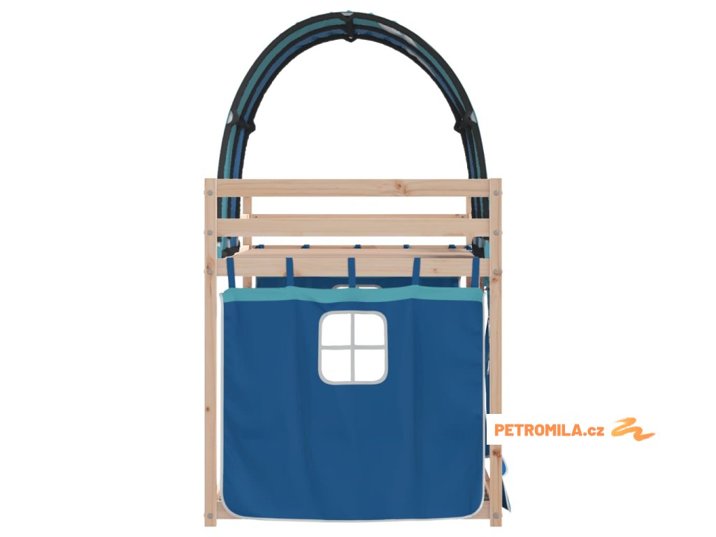 Dětská patrová postel se závěsy modrá 75 x 190 cm borovice