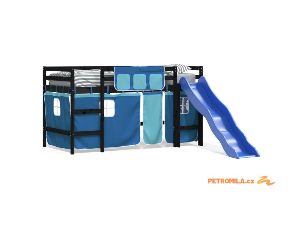 Dětská patrová postel se závěsy modrá 80 x 200 cm borovice