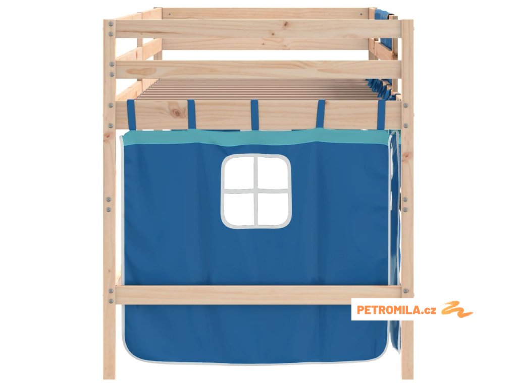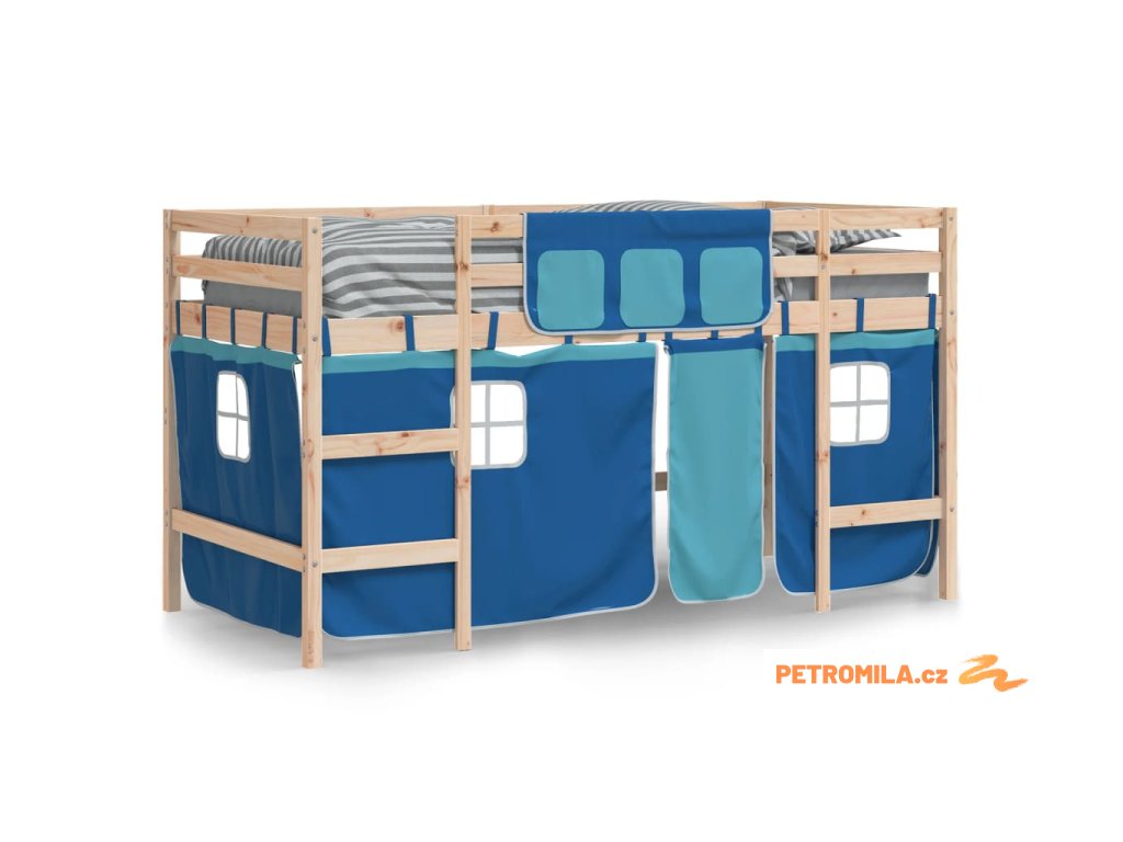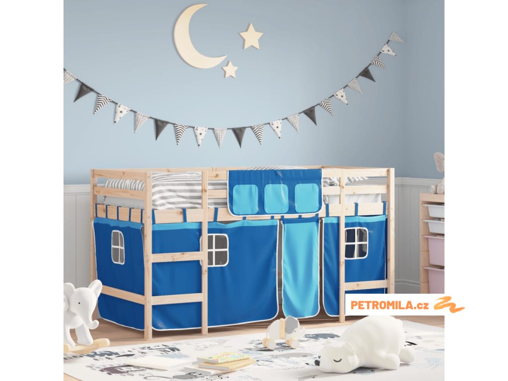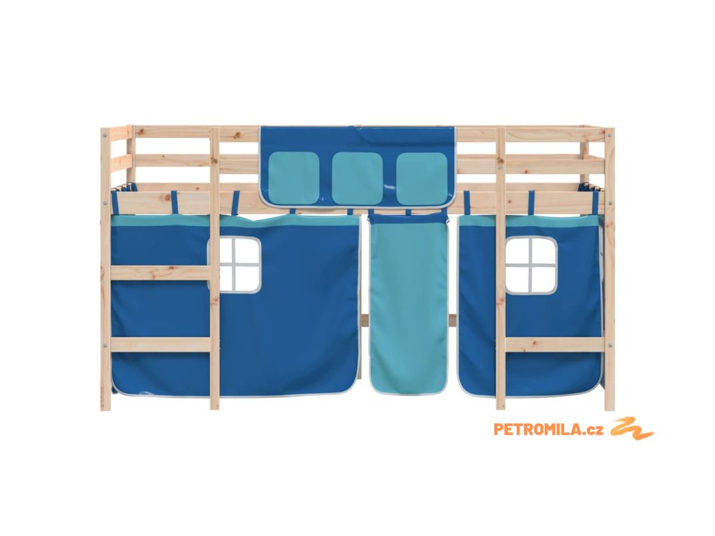 Dětská patrová postel se závěsy modrá 90 x 190 cm borovice