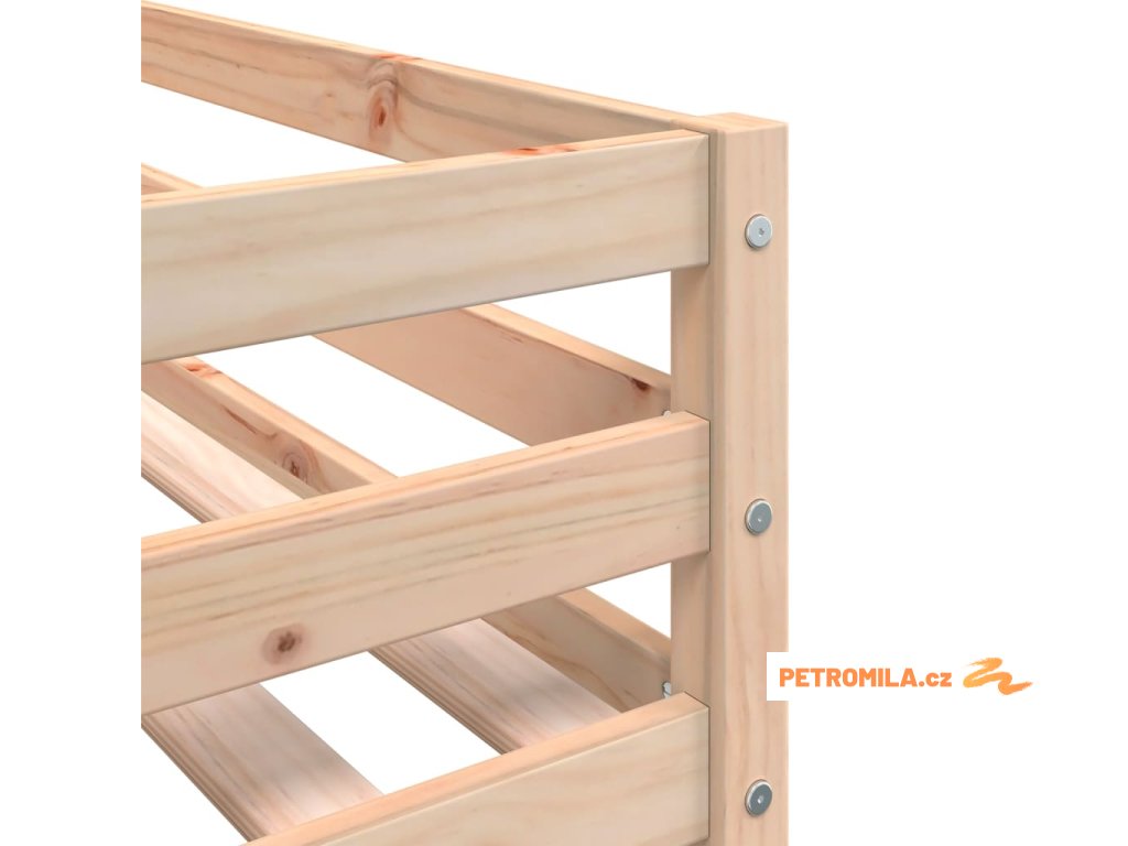 - Stabilní dřevěná konstrukce: Tato vyvýšená postel je vyrobena z masivního borového dřeva, které zajišťuje stabilitu a odolnost. Borové dřevo má rovnou kresbu a obsahuje suky, které materiálu dodávají jeho charakteristický, rustikální vzhled.