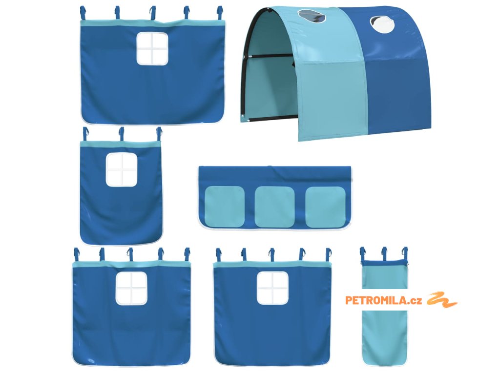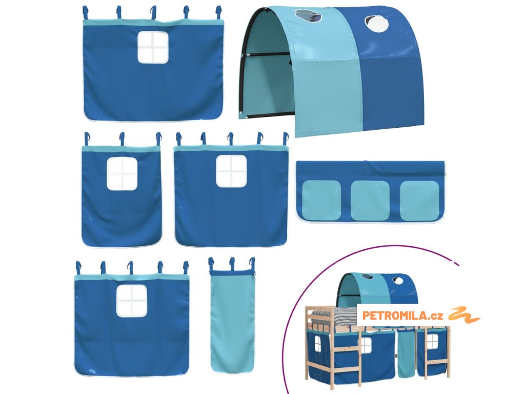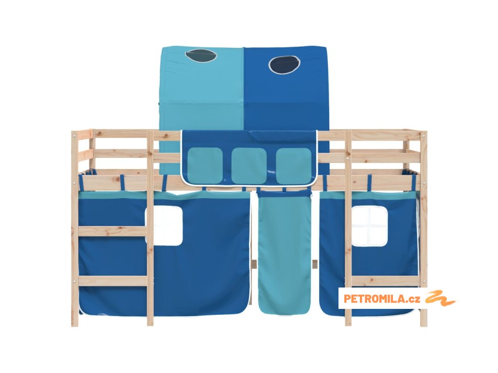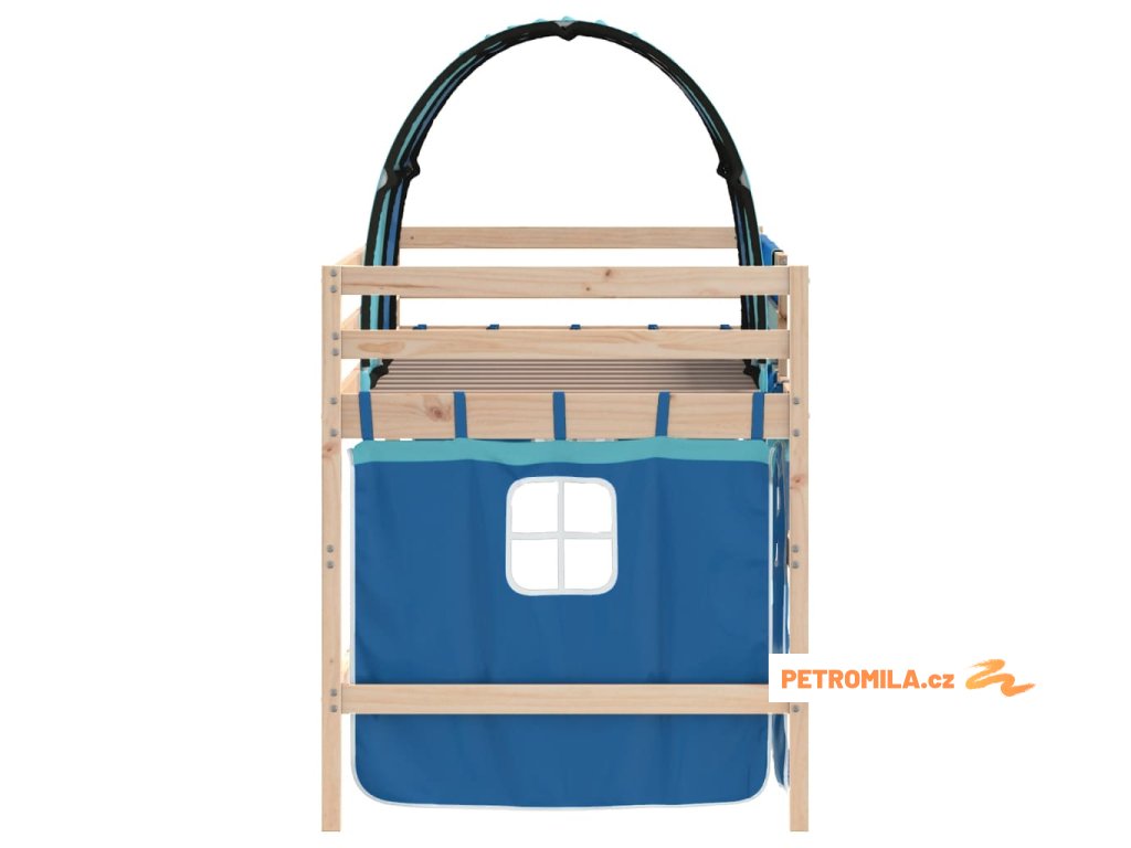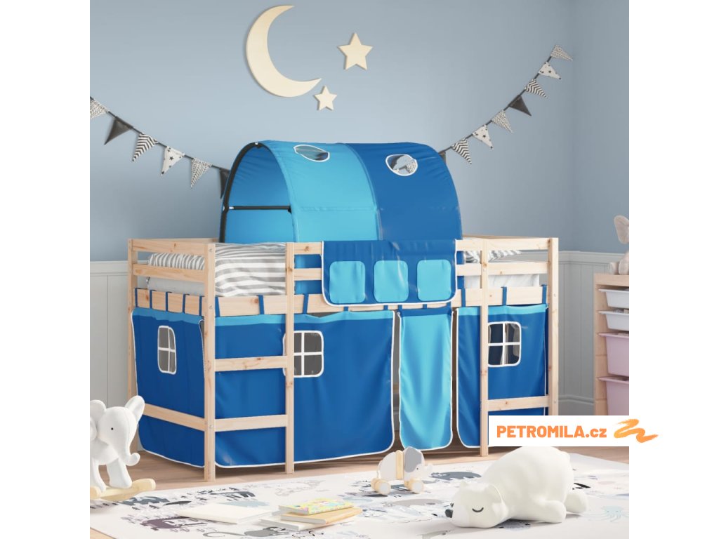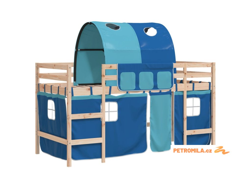 Dětská patrová postel se závěsy modrá 90 x 200 cm borovice