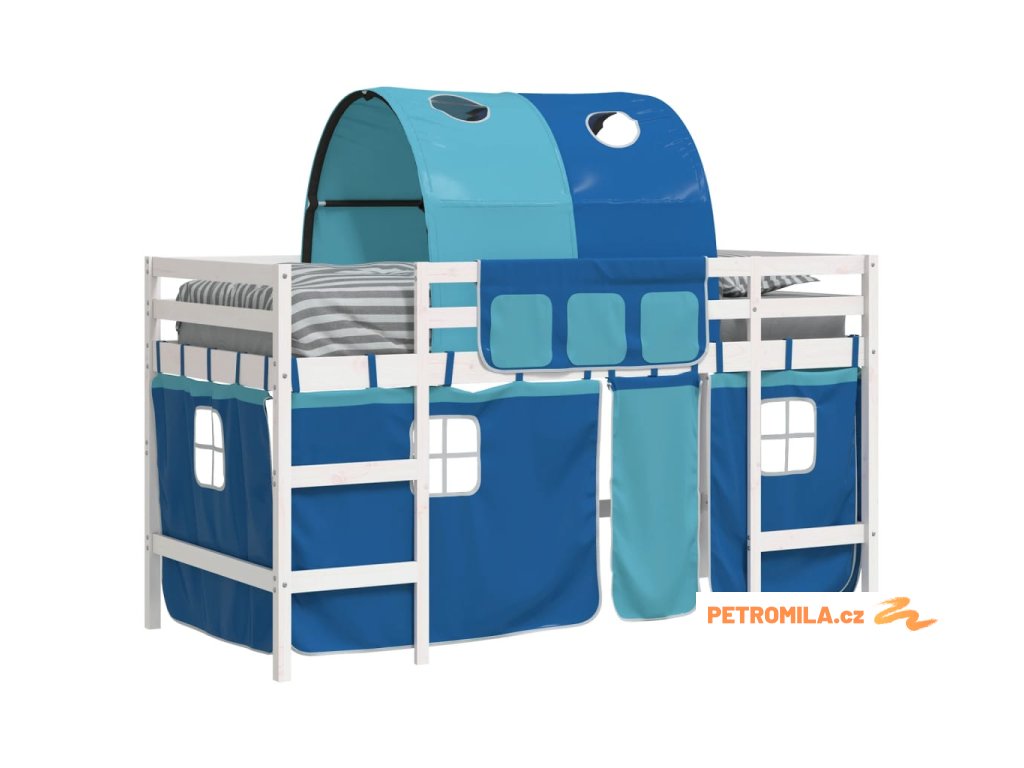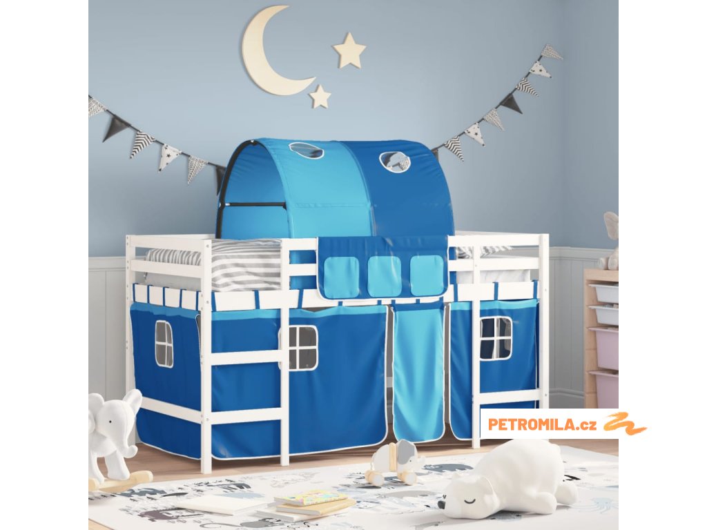Dětská patrová postel se závěsy modrá 90 x 200 cm borovice