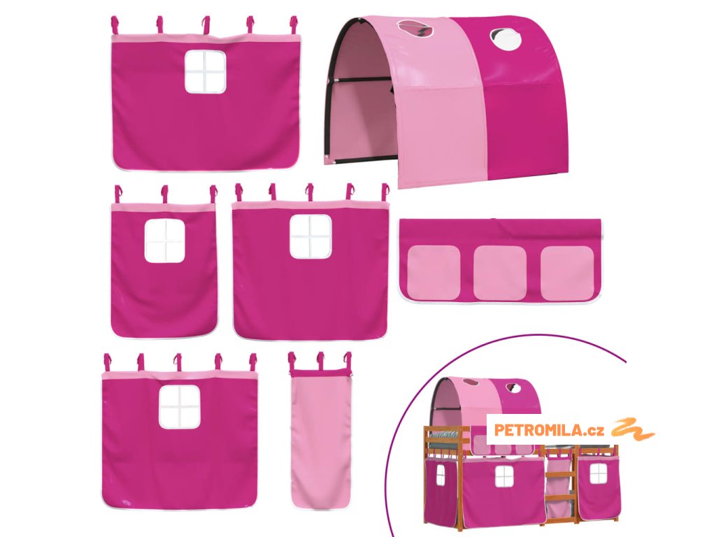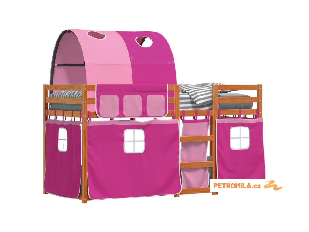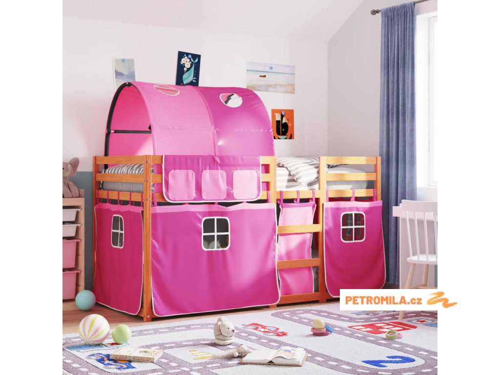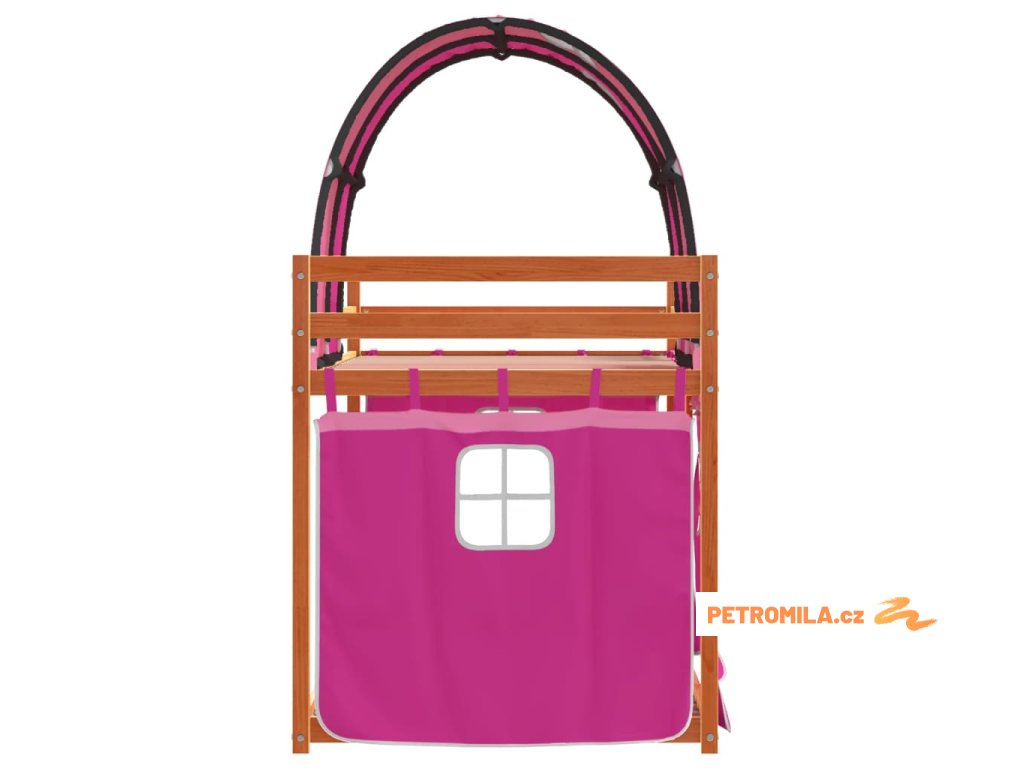 Dětská patrová postel se závěsy růžová 75 x 190 cm borovice