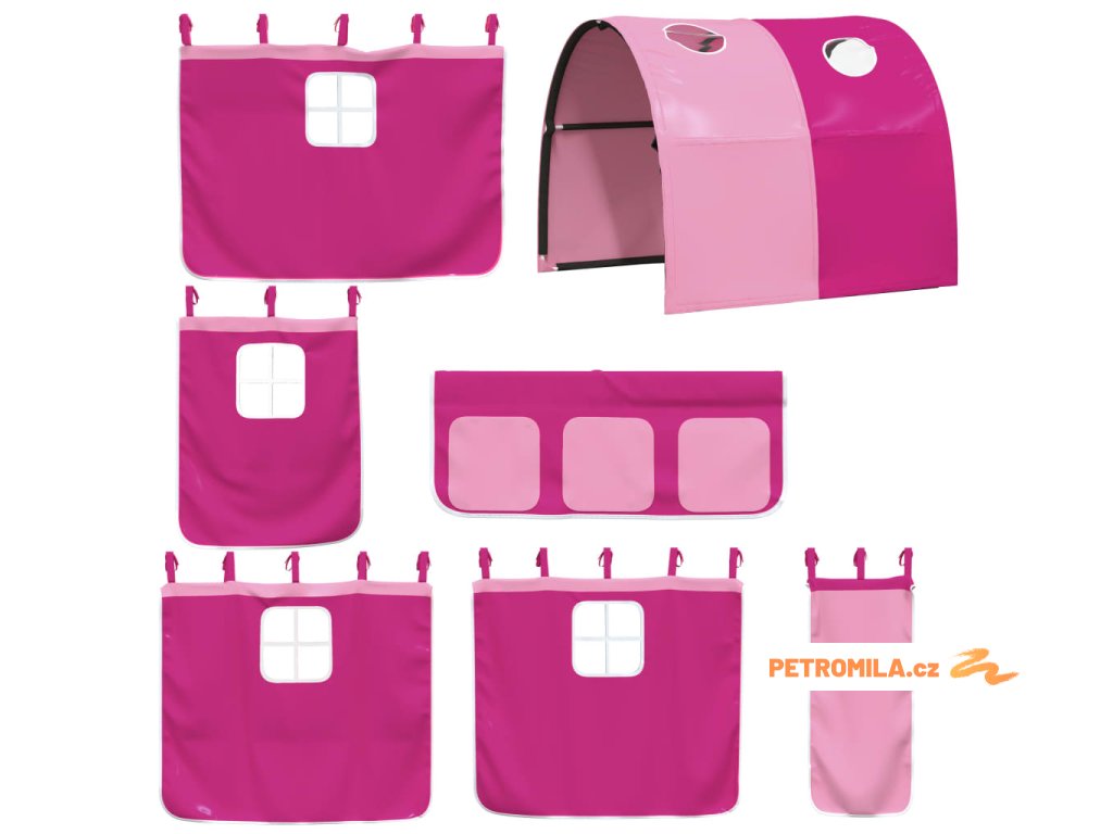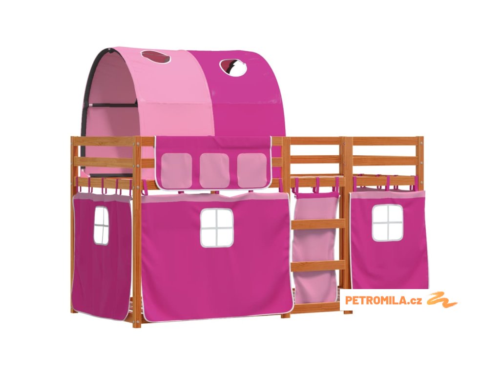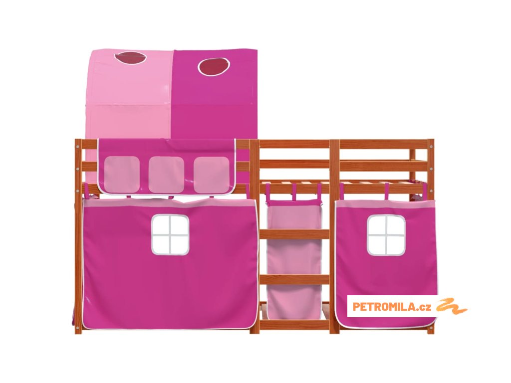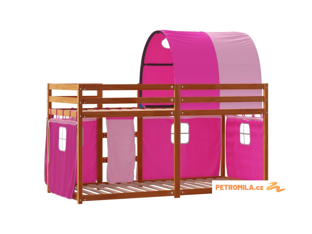 Dětská patrová postel se závěsy růžová 75 x 190 cm borovice
