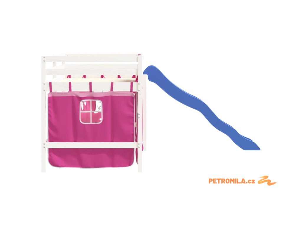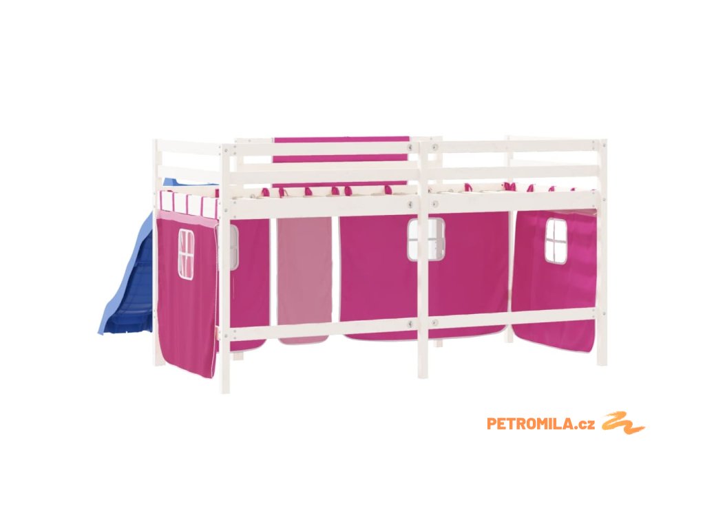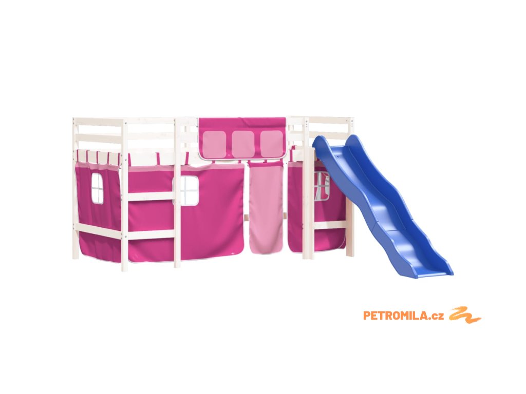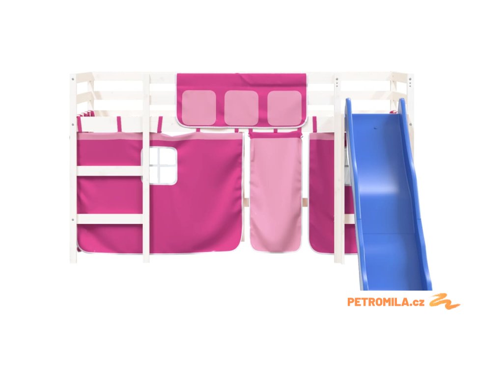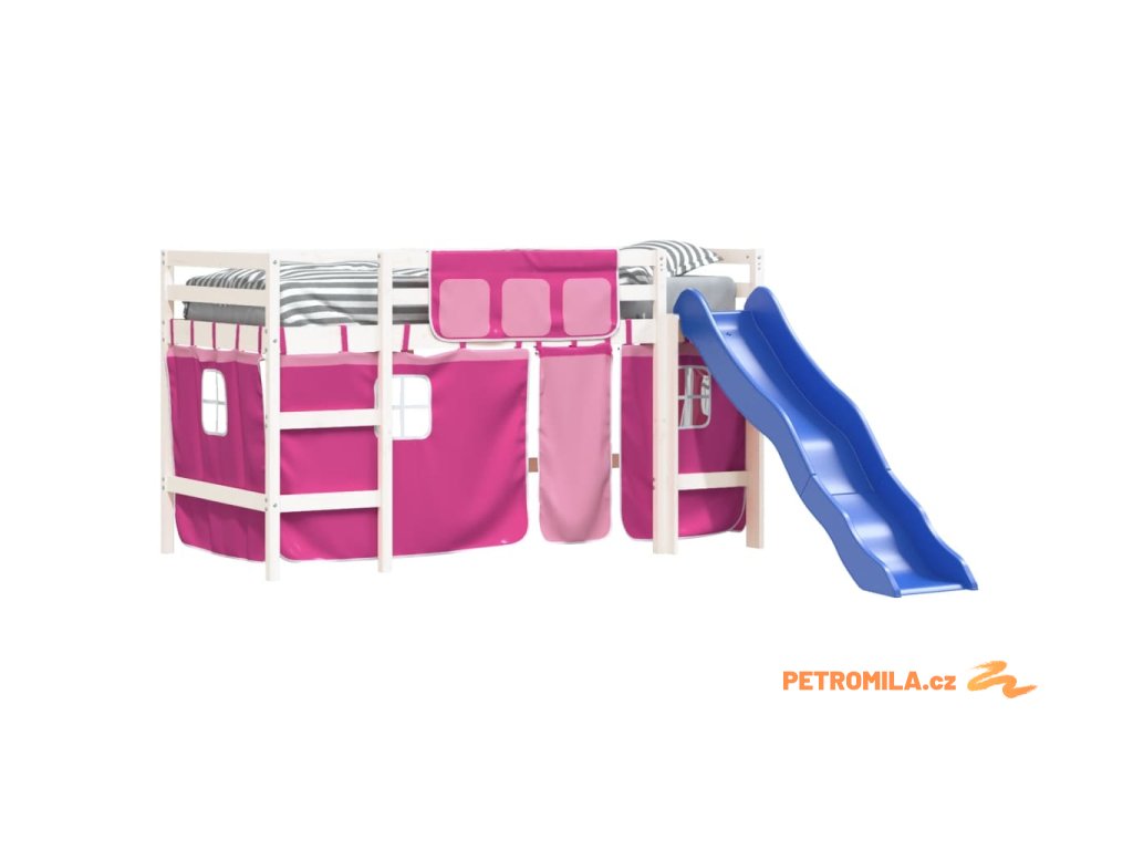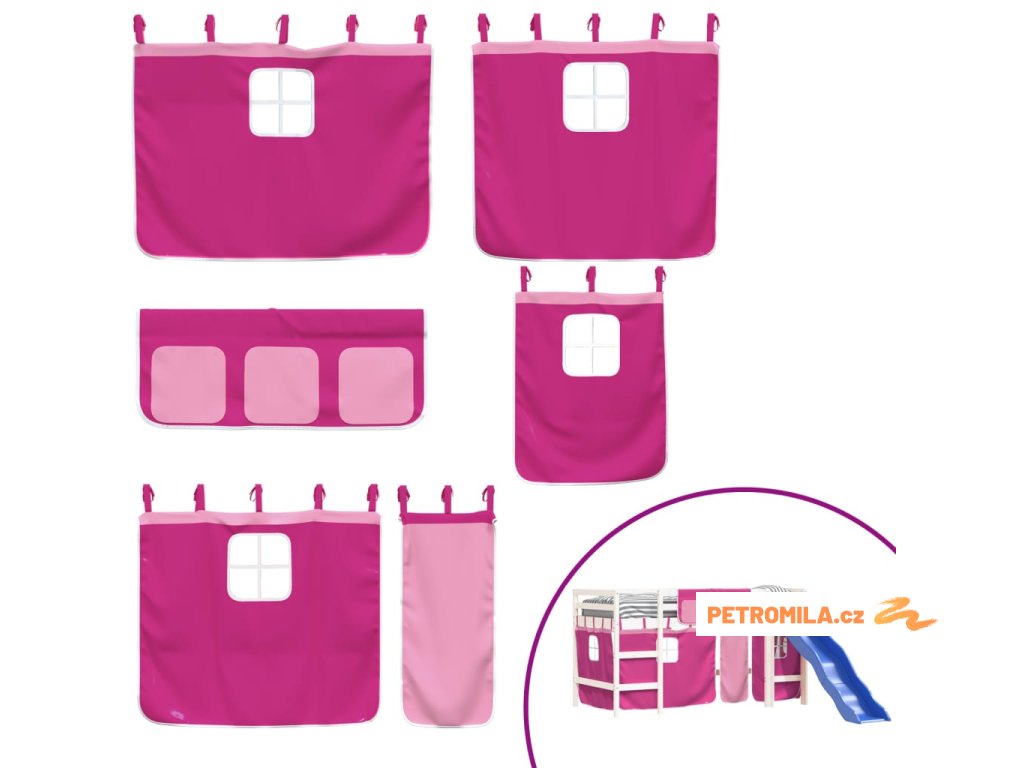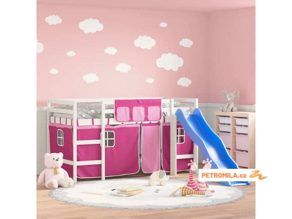 Dětská patrová postel se závěsy růžová 80 x 200 cm borovice