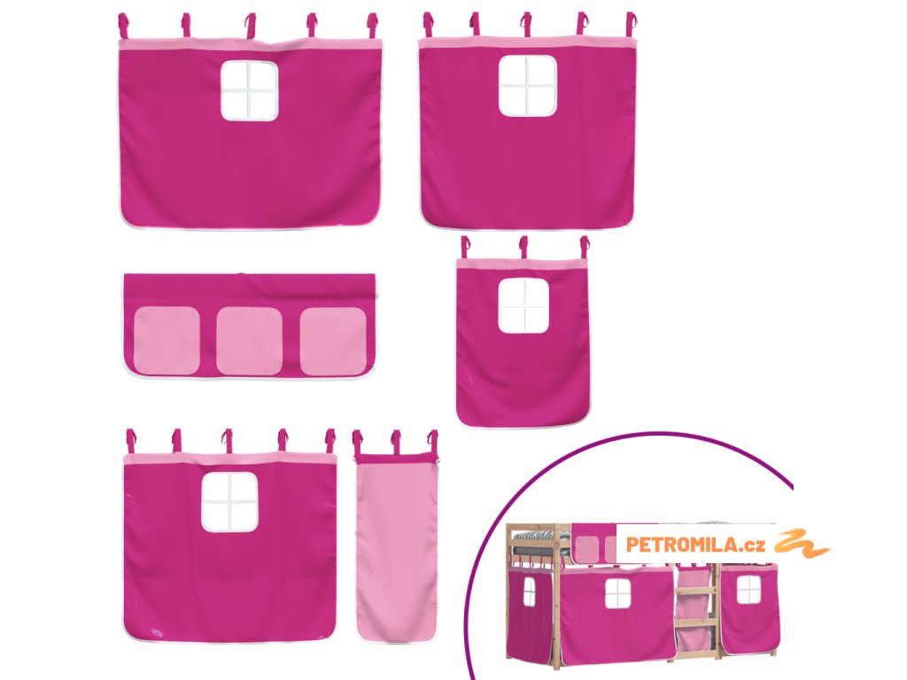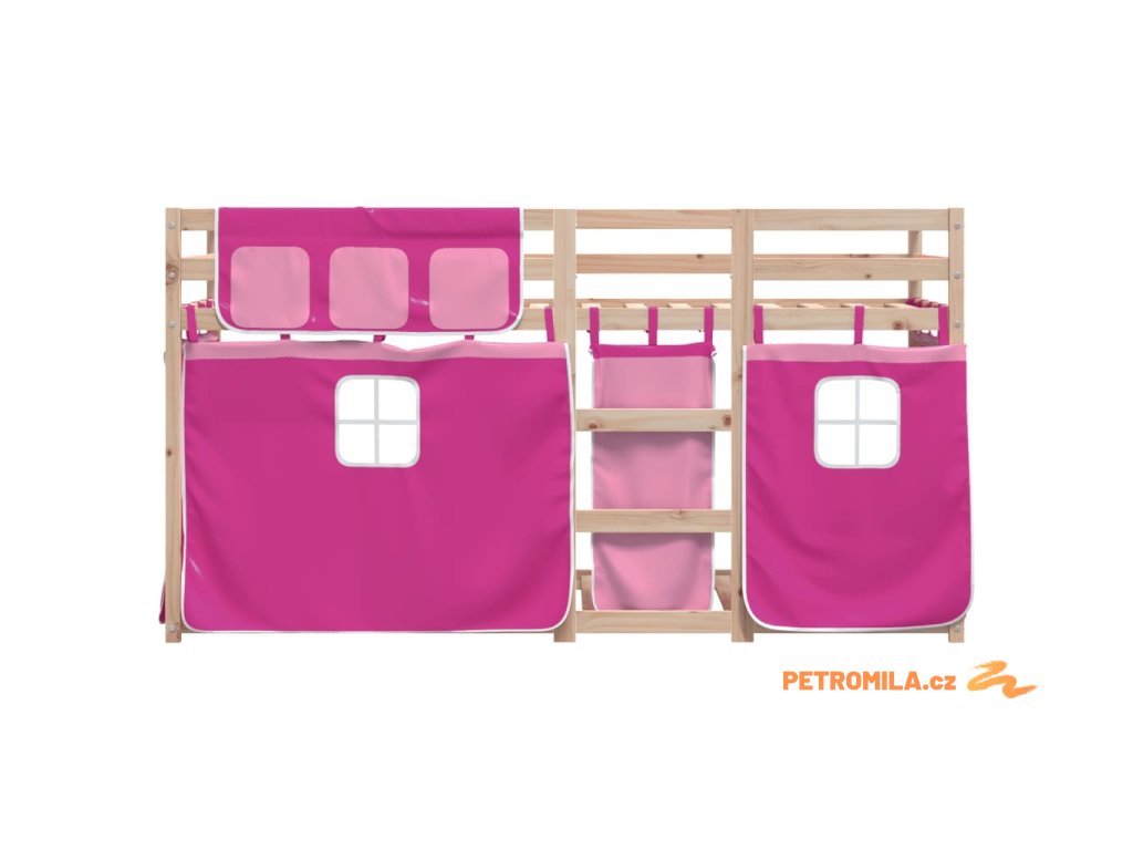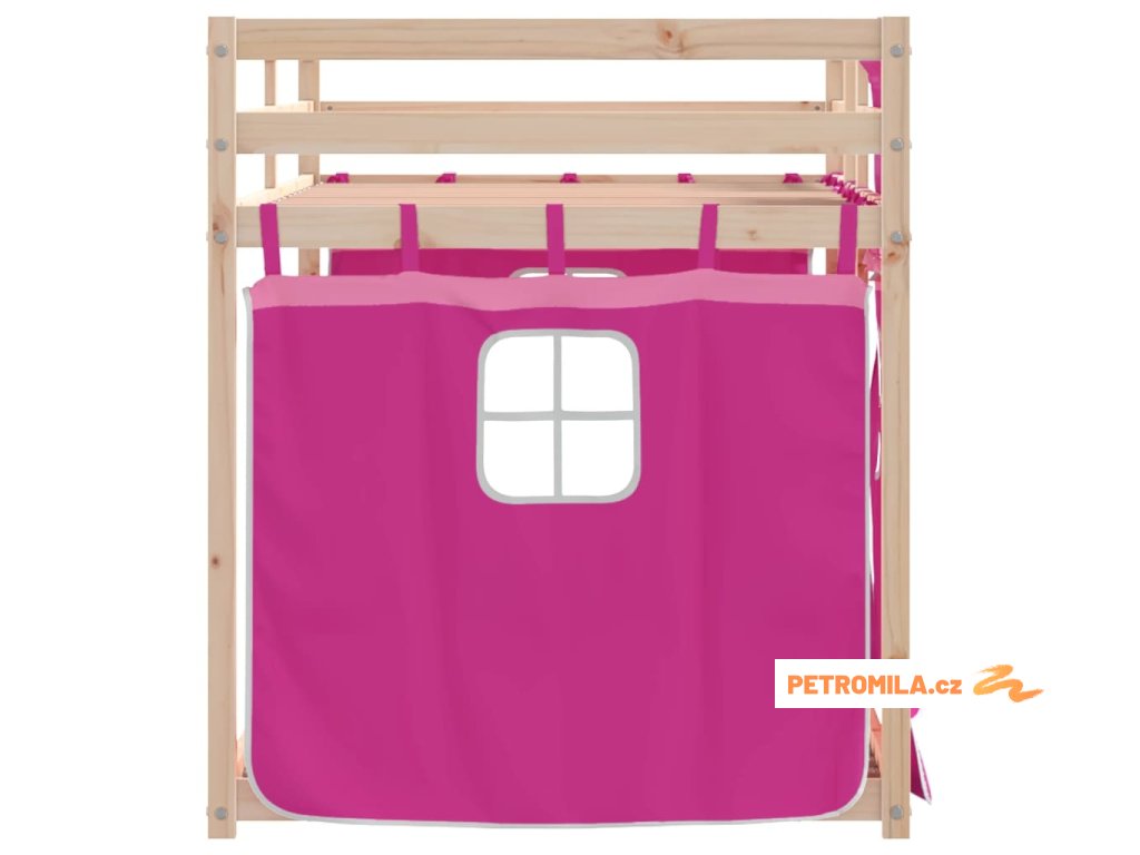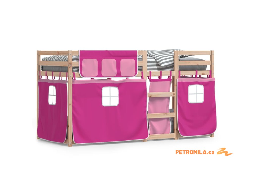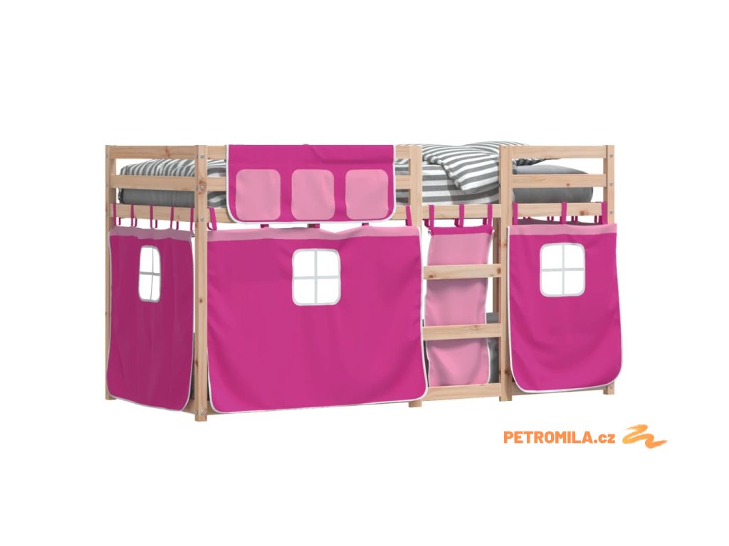 Dětská patrová postel se závěsy růžová 80 x 200 cm borovice