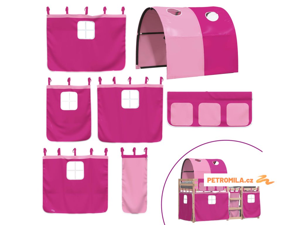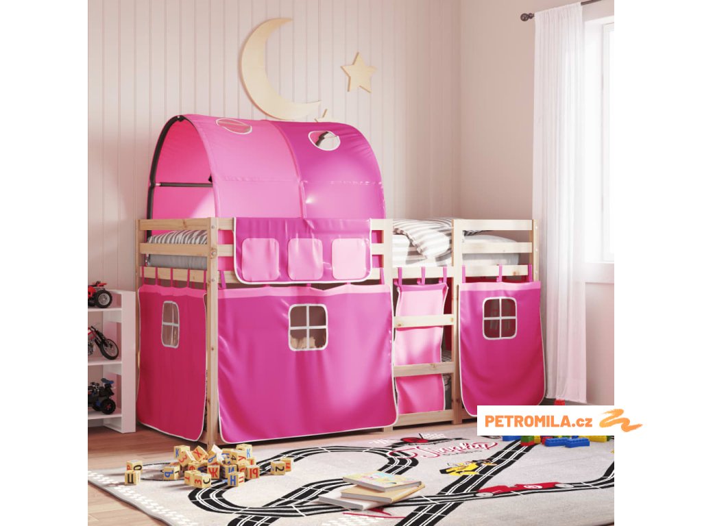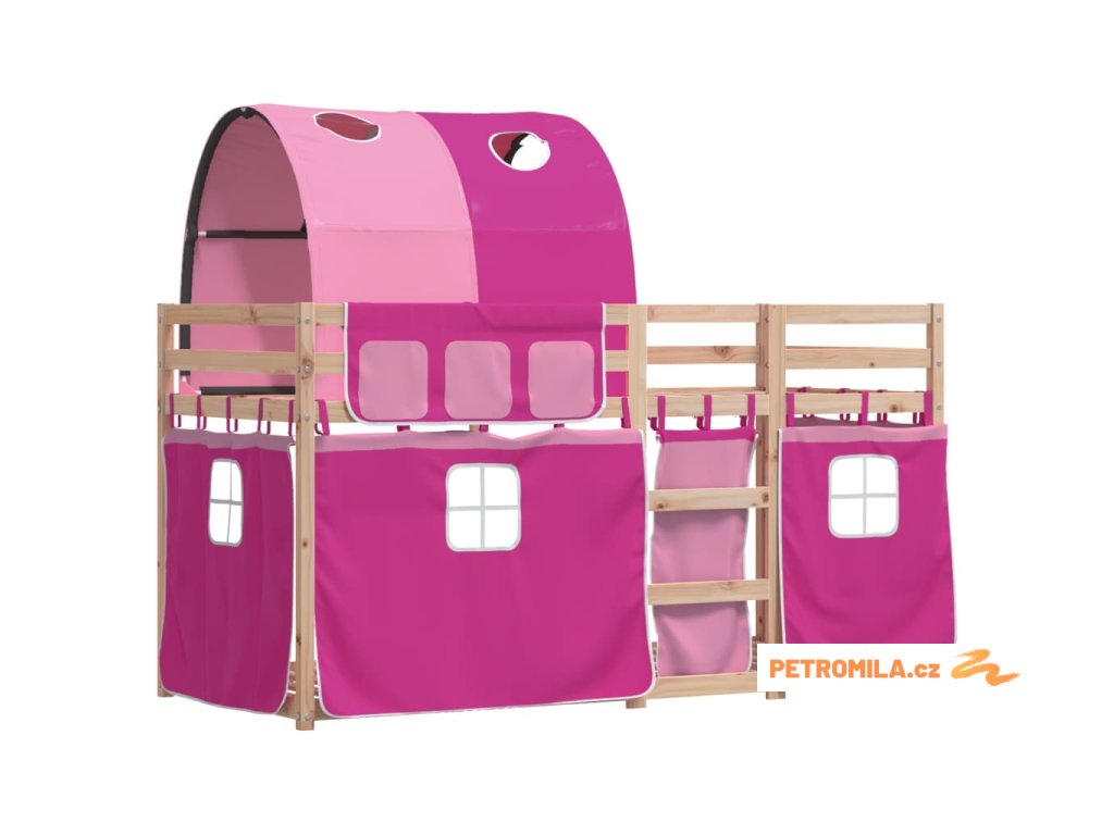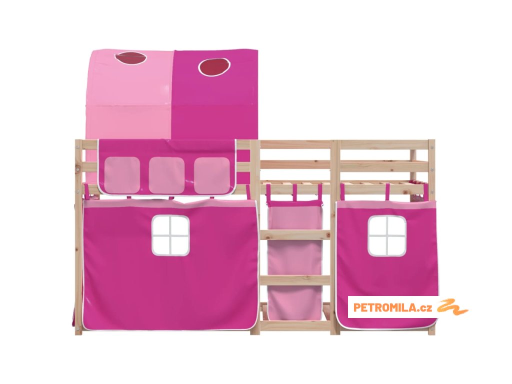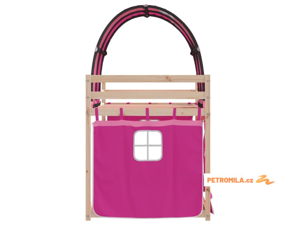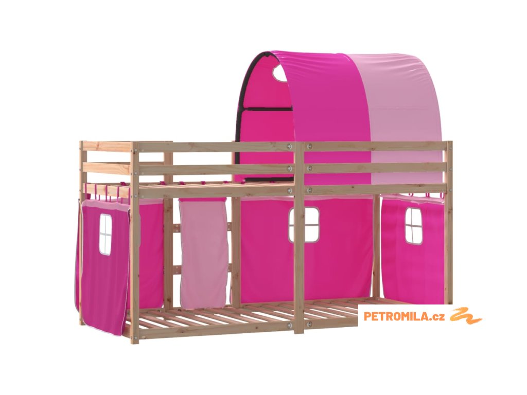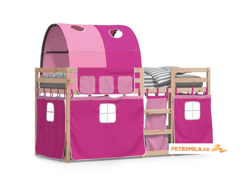 Dětská patrová postel se závěsy růžová 90 x 190 cm borovice