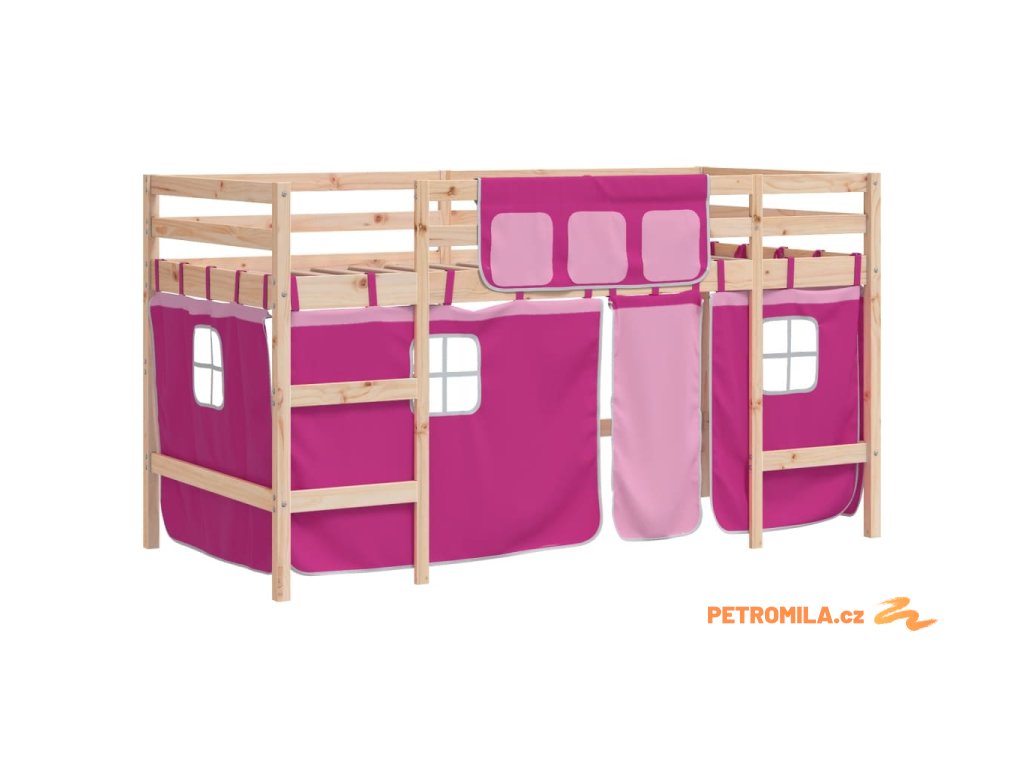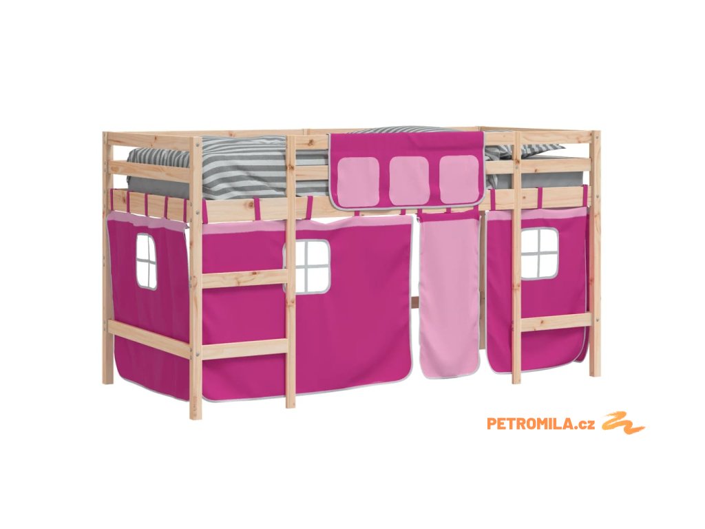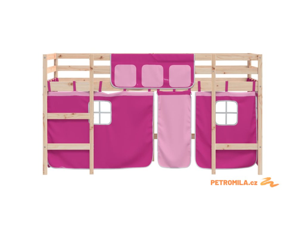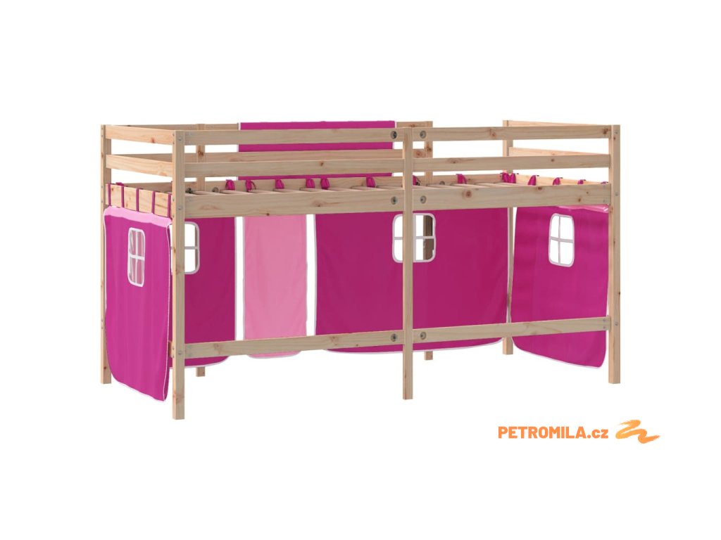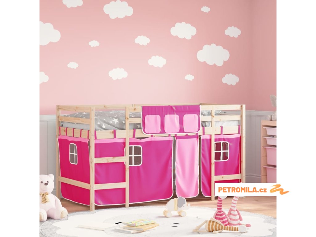 Dětská patrová postel se závěsy růžová 90 x 200 cm borovice