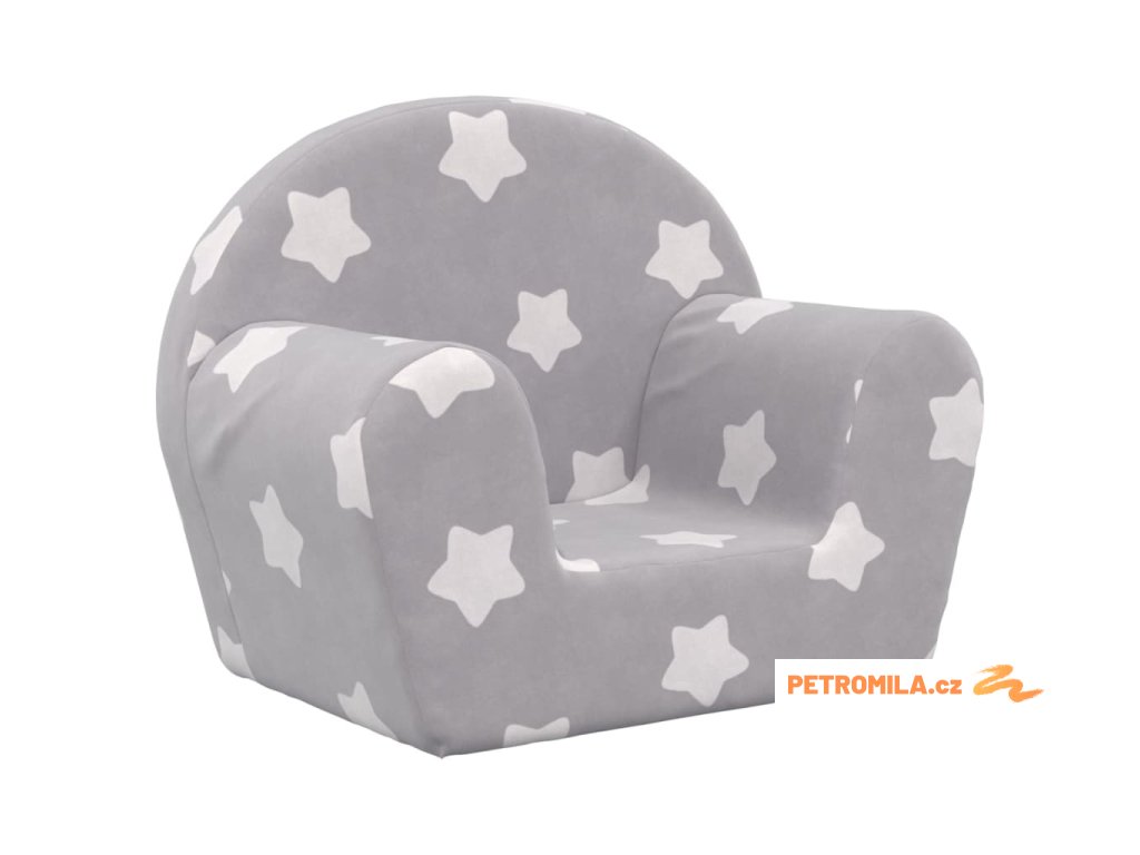 Dětská pohovka světle šedá s hvězdami měkký plyš