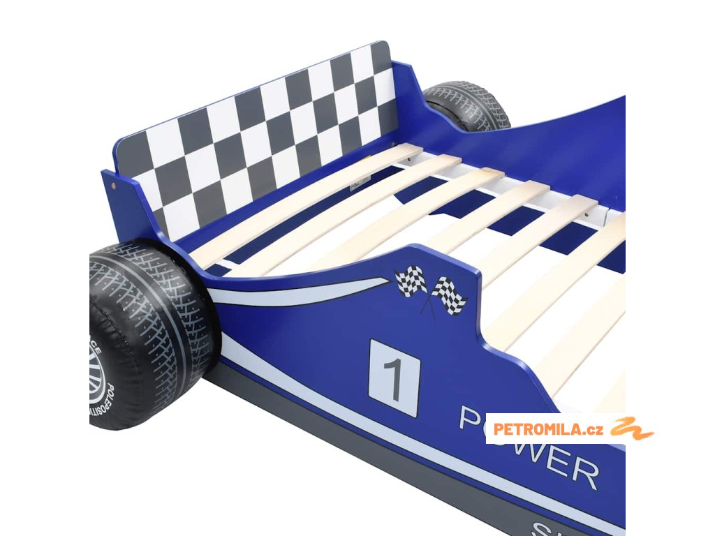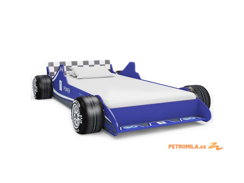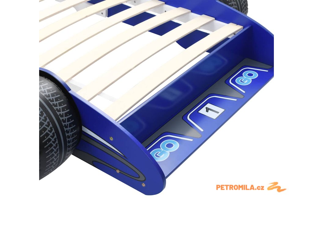 Dětská postel ve tvaru závodního auta 90 x 200 cm modrá