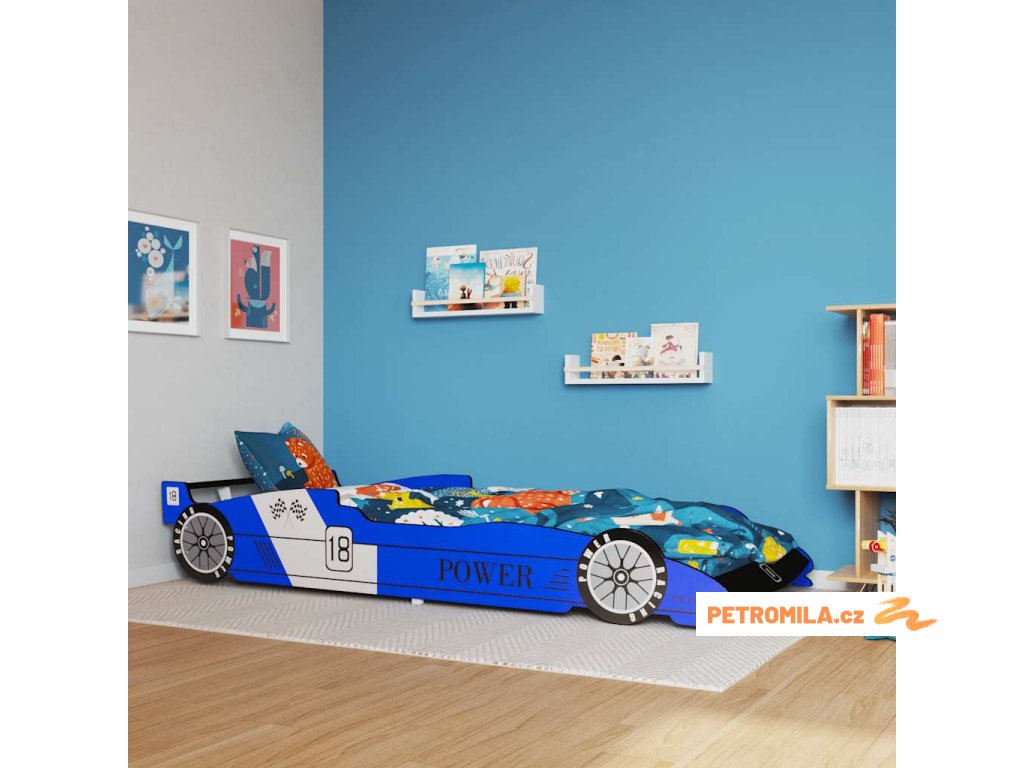 Dětská postel ve tvaru závodního auta 90x200 cm modrá