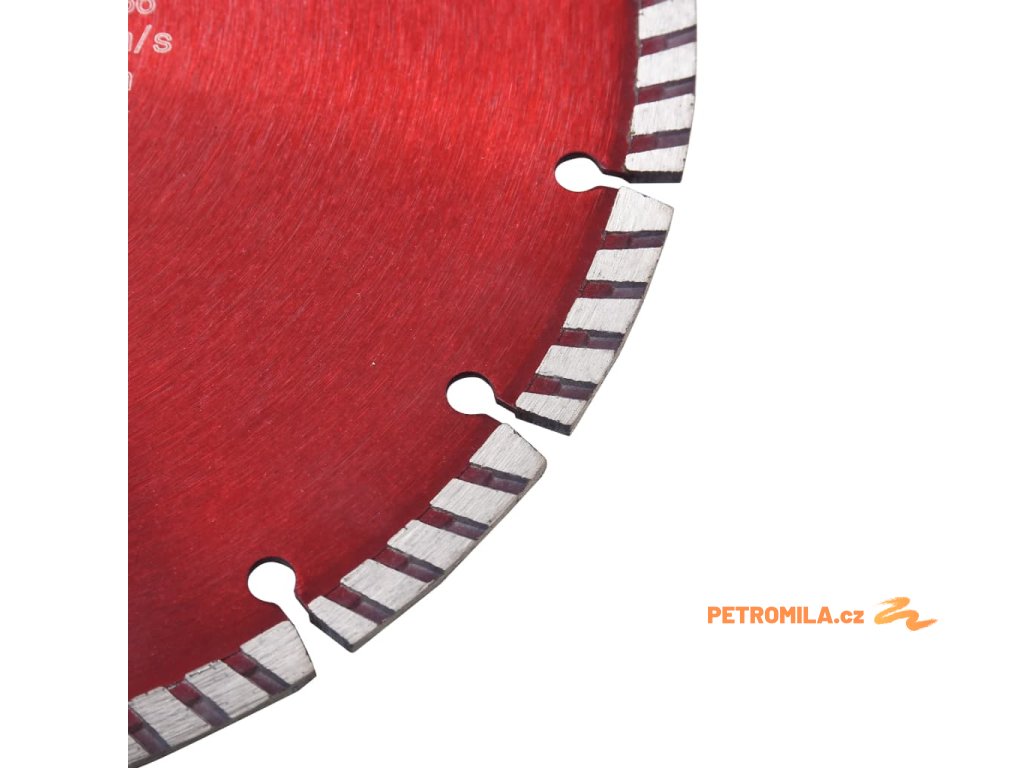 Originální turbo segmenty diamantového kotouče zaručují rychlejší řeznou rychlost a zároveň hladký řez. Prémiová ocel a diamantový materiál eliminují úbytek materiálu, a tím se prodlužuje jeho provozní životnost. Diamantový kotouč je navíc vyráběný lisováním za studena a je vhodný pro řezání za mokra i za sucha.