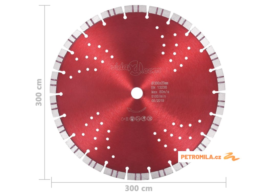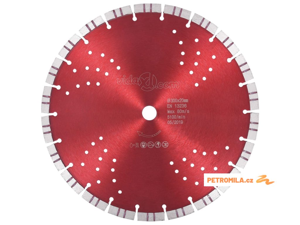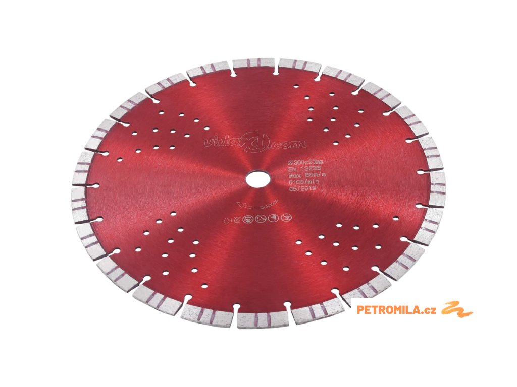 Diamantový řezací kotouč turbo s otvory ocel 300 mm