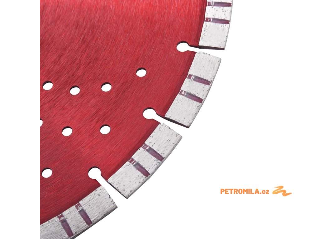 Originální turbo segmenty diamantového kotouče zaručují rychlejší řeznou rychlost a zároveň hladký řez. Prémiová ocel a diamantový materiál eliminují úbytek materiálu, a tím se prodlužuje jeho provozní životnost. Diamantový kotouč je navíc vyráběný lisováním za studena a je vhodný pro řezání za mokra i za sucha.