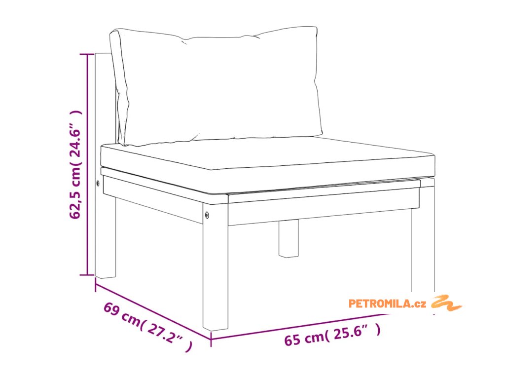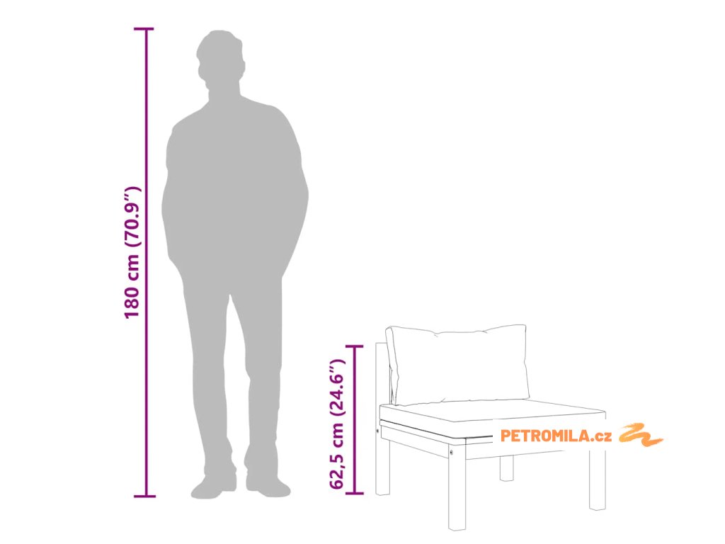 Středová pohovka je vyrobená z masivního akáciového dřeva, takže je pevná, robustní a má dlouhou životnost. Vzhledem k olejové povrchové úpravě je vhodná pro venkovní použití. Polstrovaný sedák a podušky na opěradle poskytují maximální pohodlí při sezení. Dá se zkombinovat s dalšími dostupnými modulárními segmenty, takže si můžete vytvořit vlastní zahradní posezení!