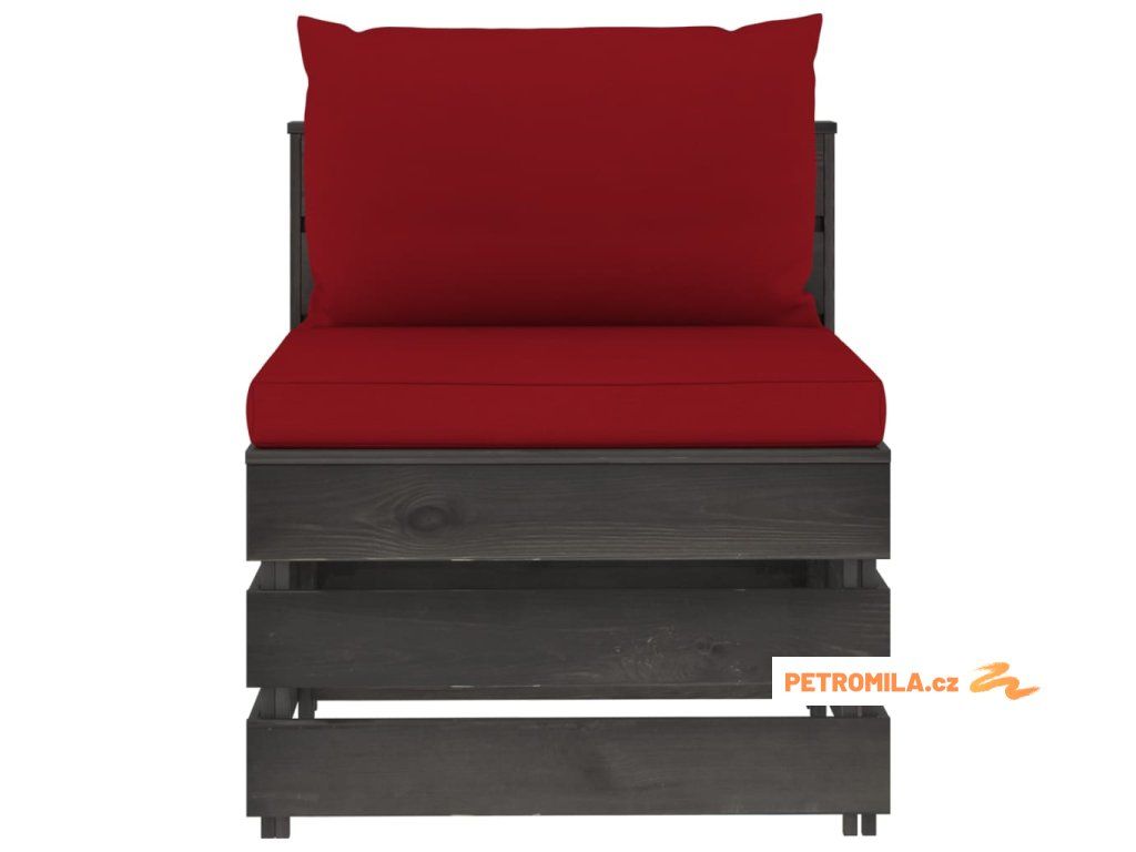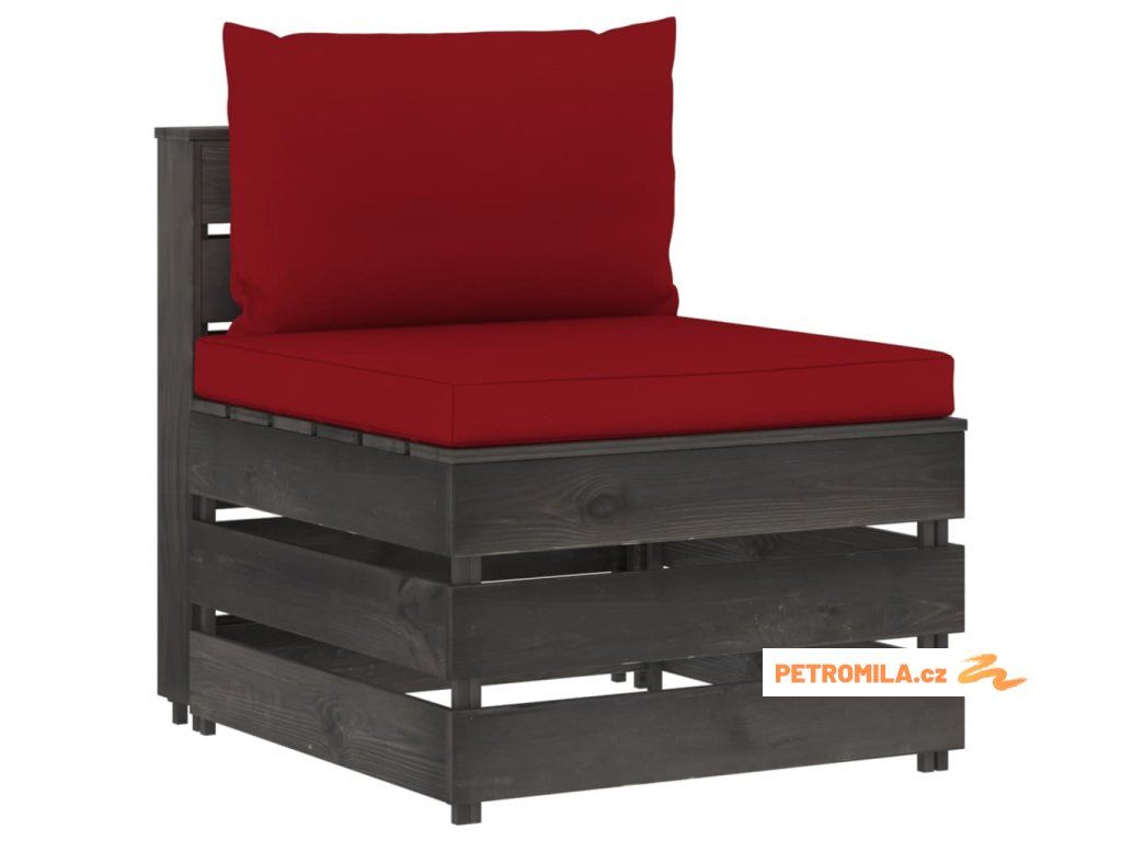 Dílčí středová pohovka s poduškami šedě impregnované dřevo