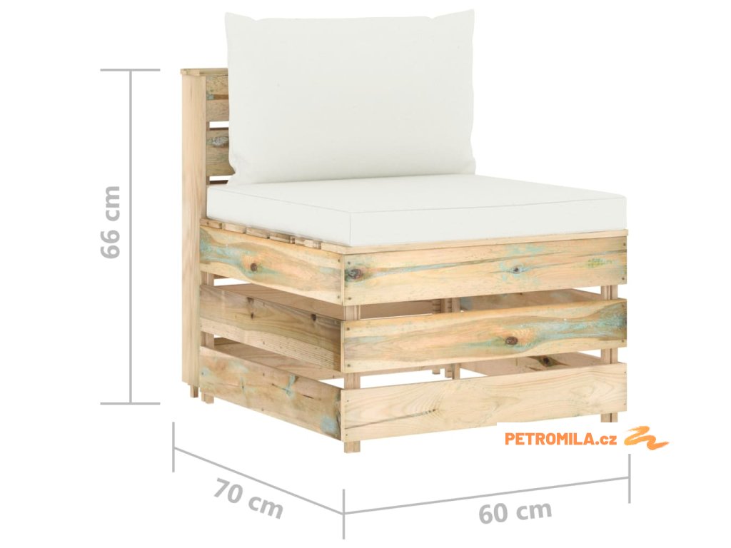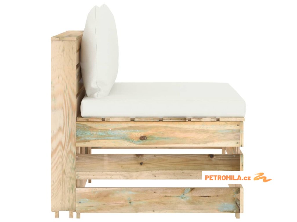Dílčí středová pohovka s poduškami zeleně impregnované dřevo