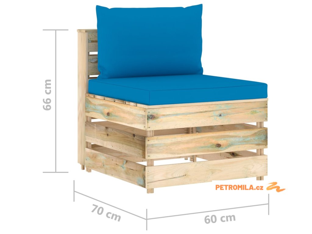 Dílčí středová pohovka s poduškami zeleně impregnované dřevo