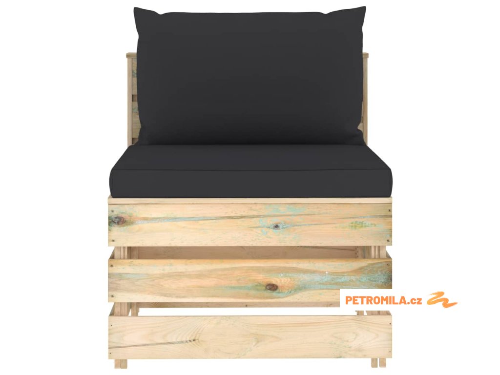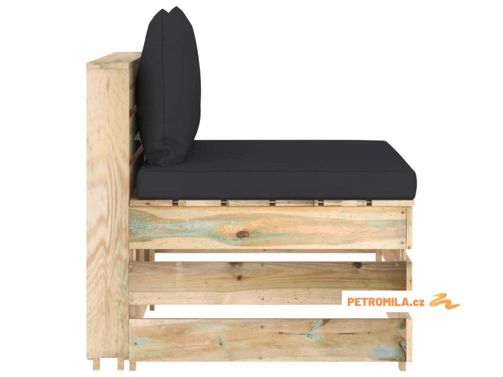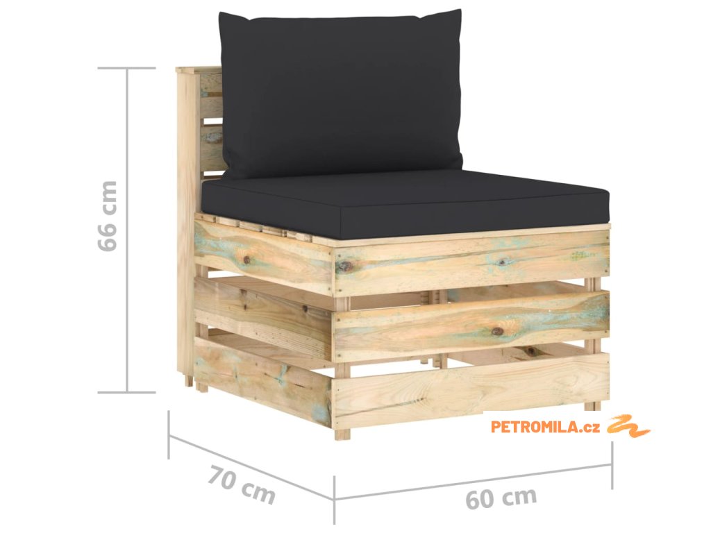 Dílčí středová pohovka s poduškami zeleně impregnované dřevo