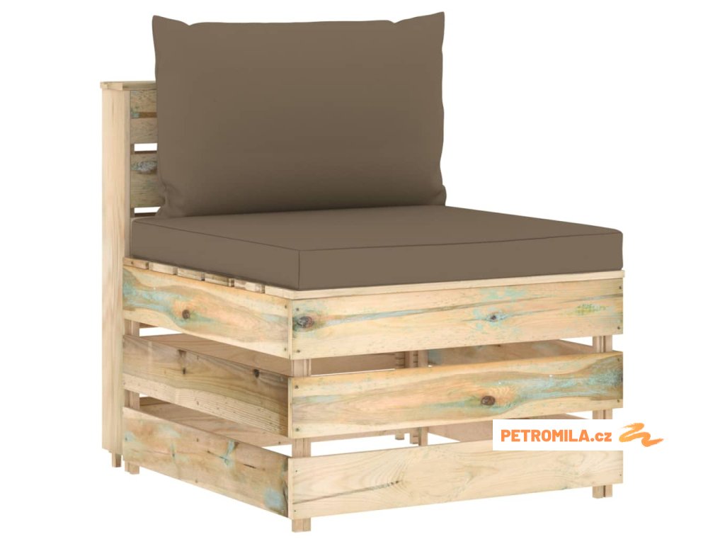 Dílčí středová pohovka s poduškami zeleně impregnované dřevo