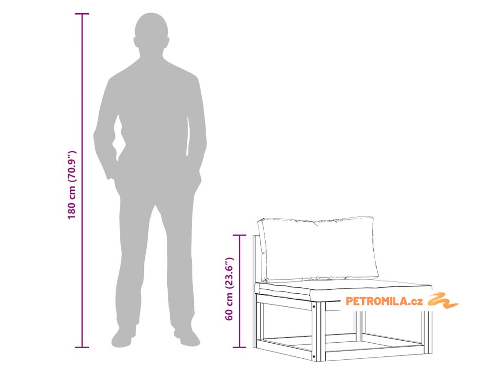Dílčí středová pohovka s tmavě šedou poduškou masivní akácie