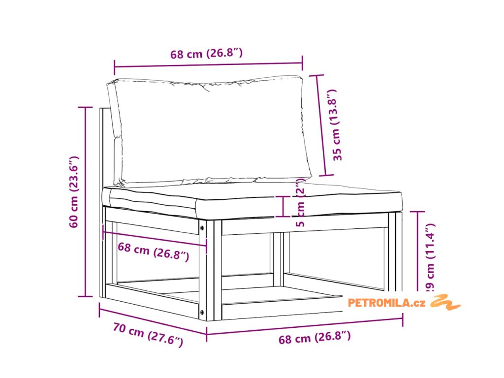 - Tloušťka podušky na sedák/opěradlo: 6 cm
