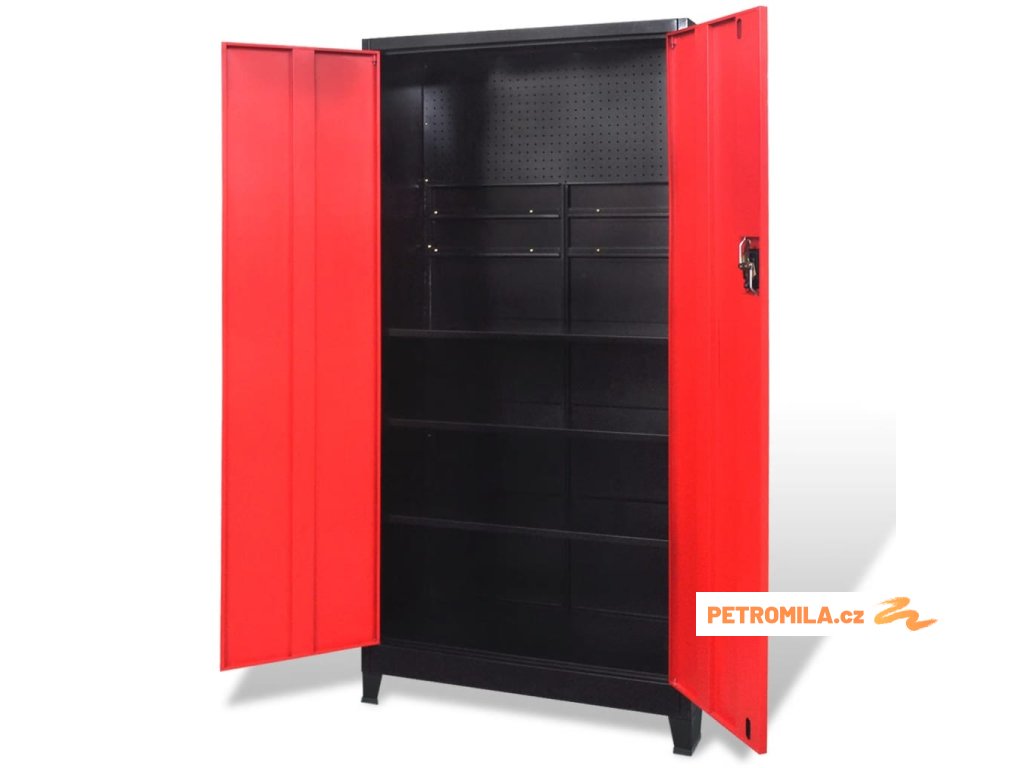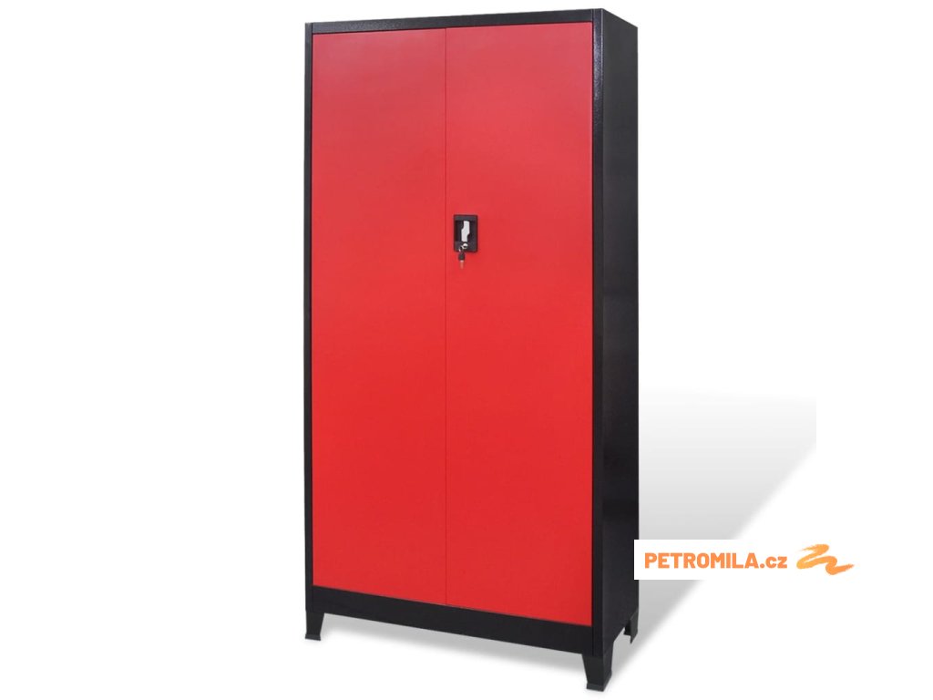 Dílenská skříň se 2 dvířky ocelová 90x40x180 cm černočervená