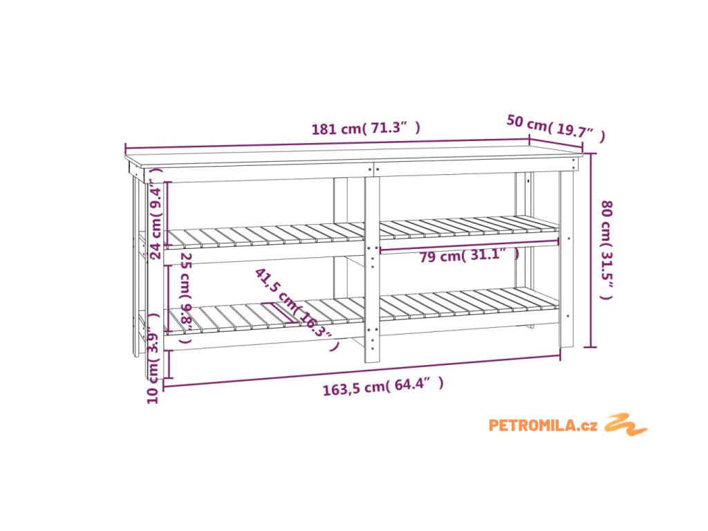 - Rozměry: 181 x 50 x 80 cm (Š x H x V)